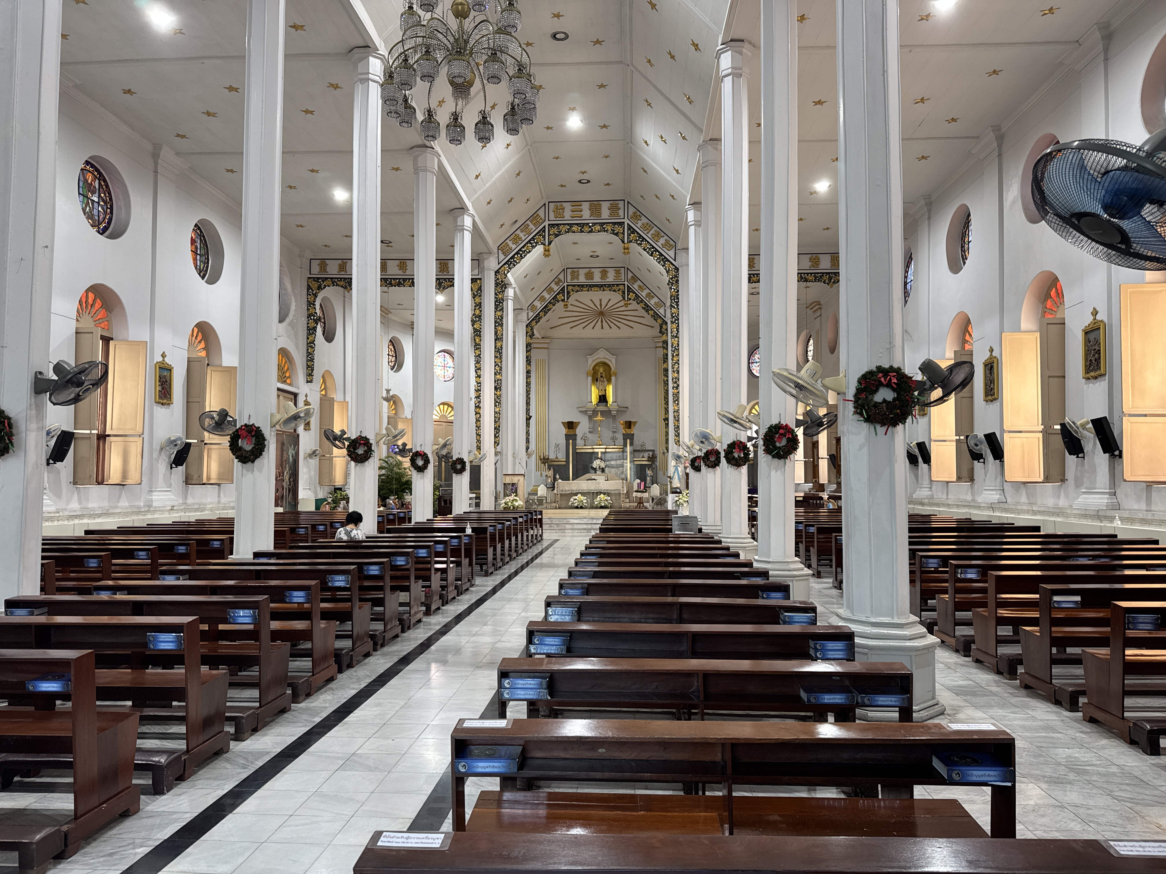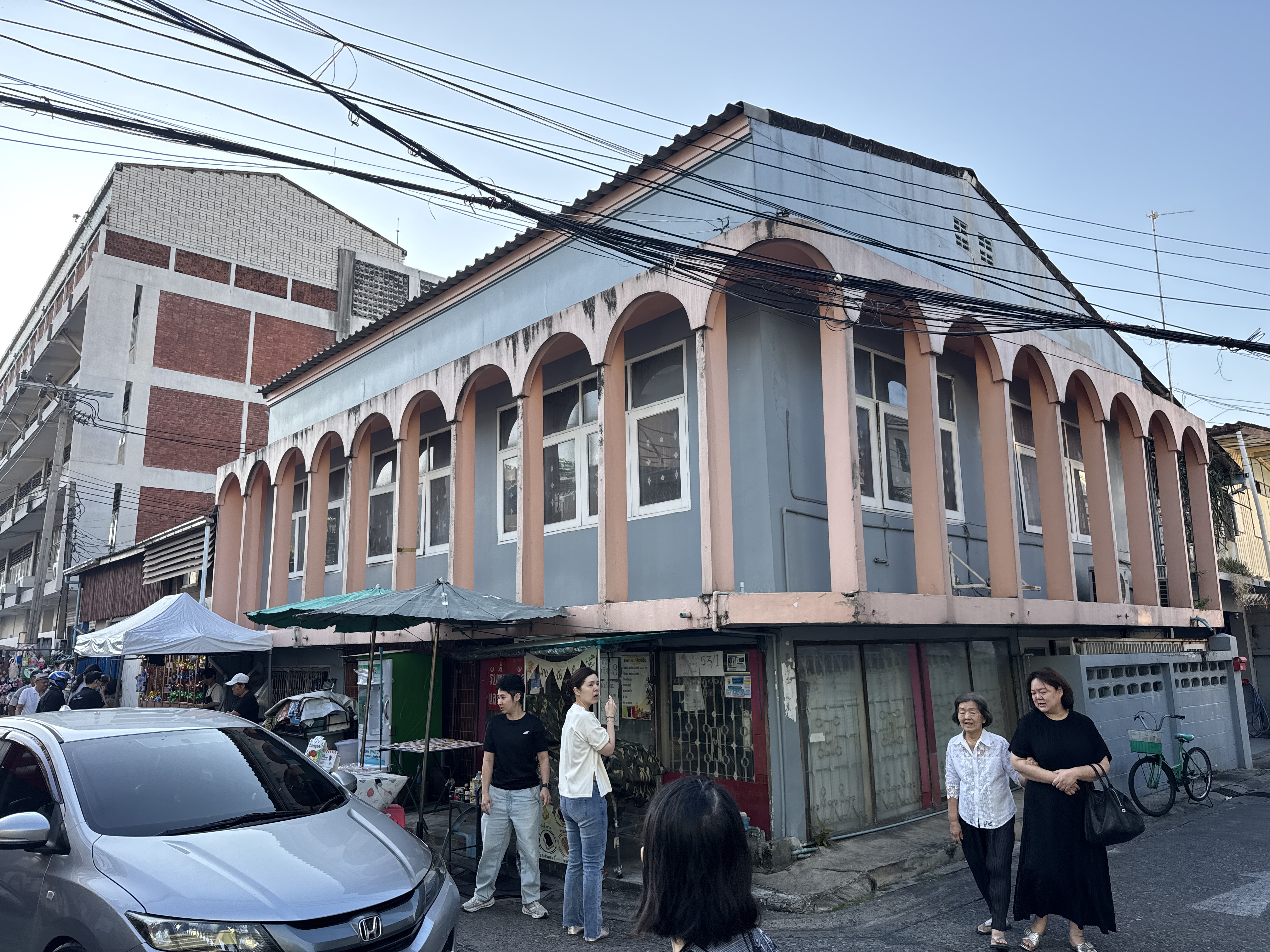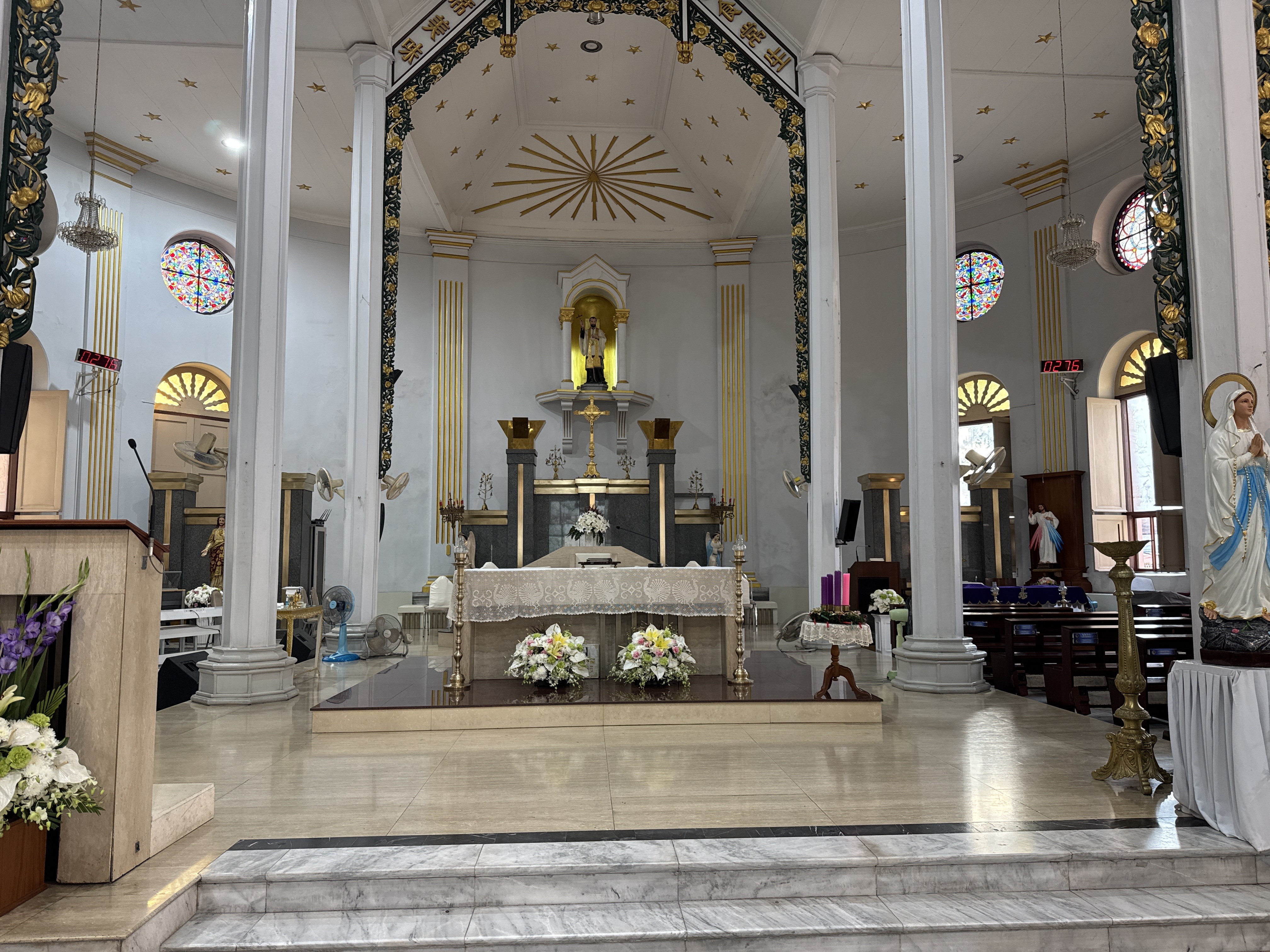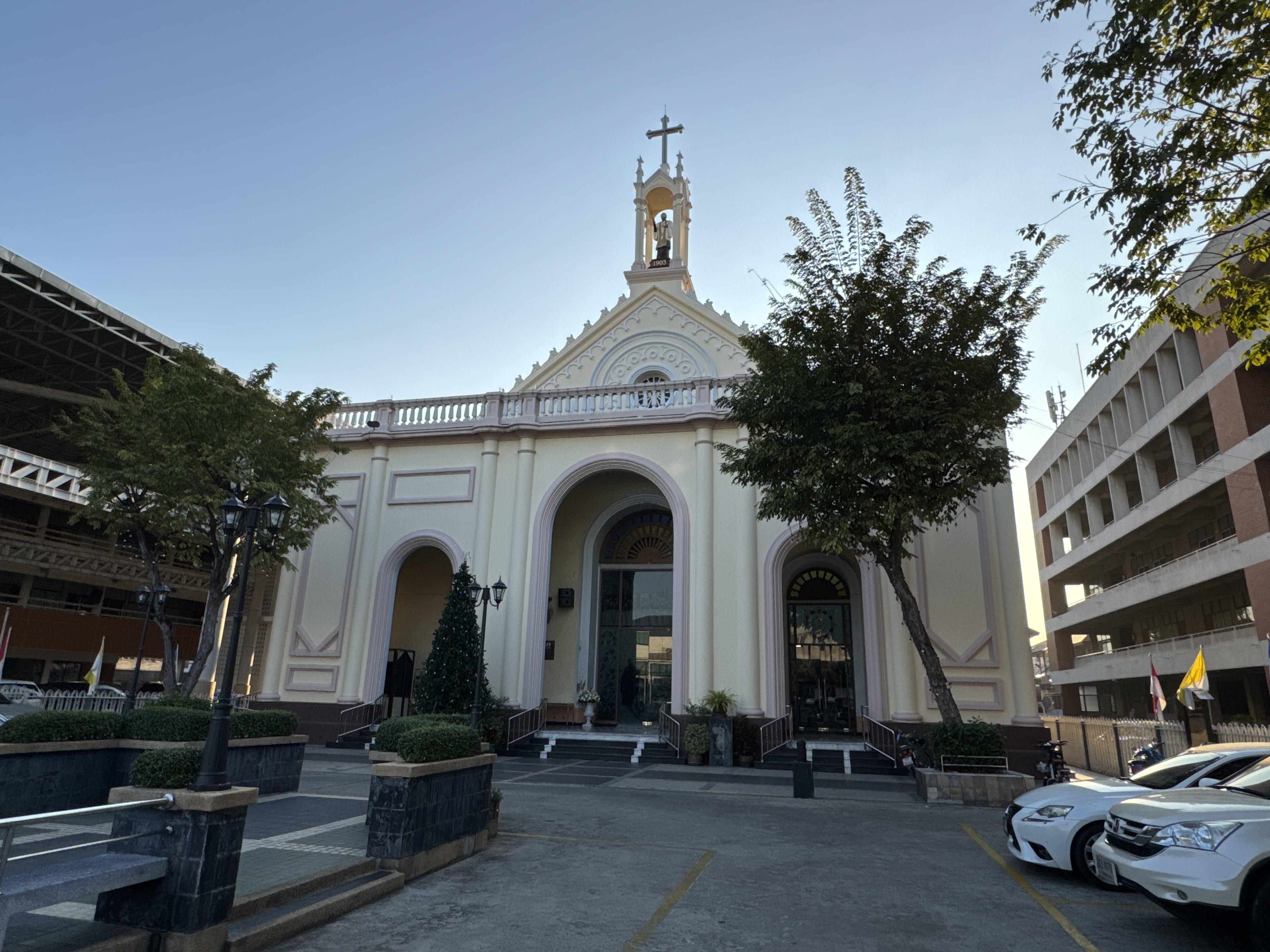It’s located on Samsen Soi 11–13 (Soi Mittrakham / Soi Mittakham), off Samsen Road. The market stalls set up in the lanes right behind the church.