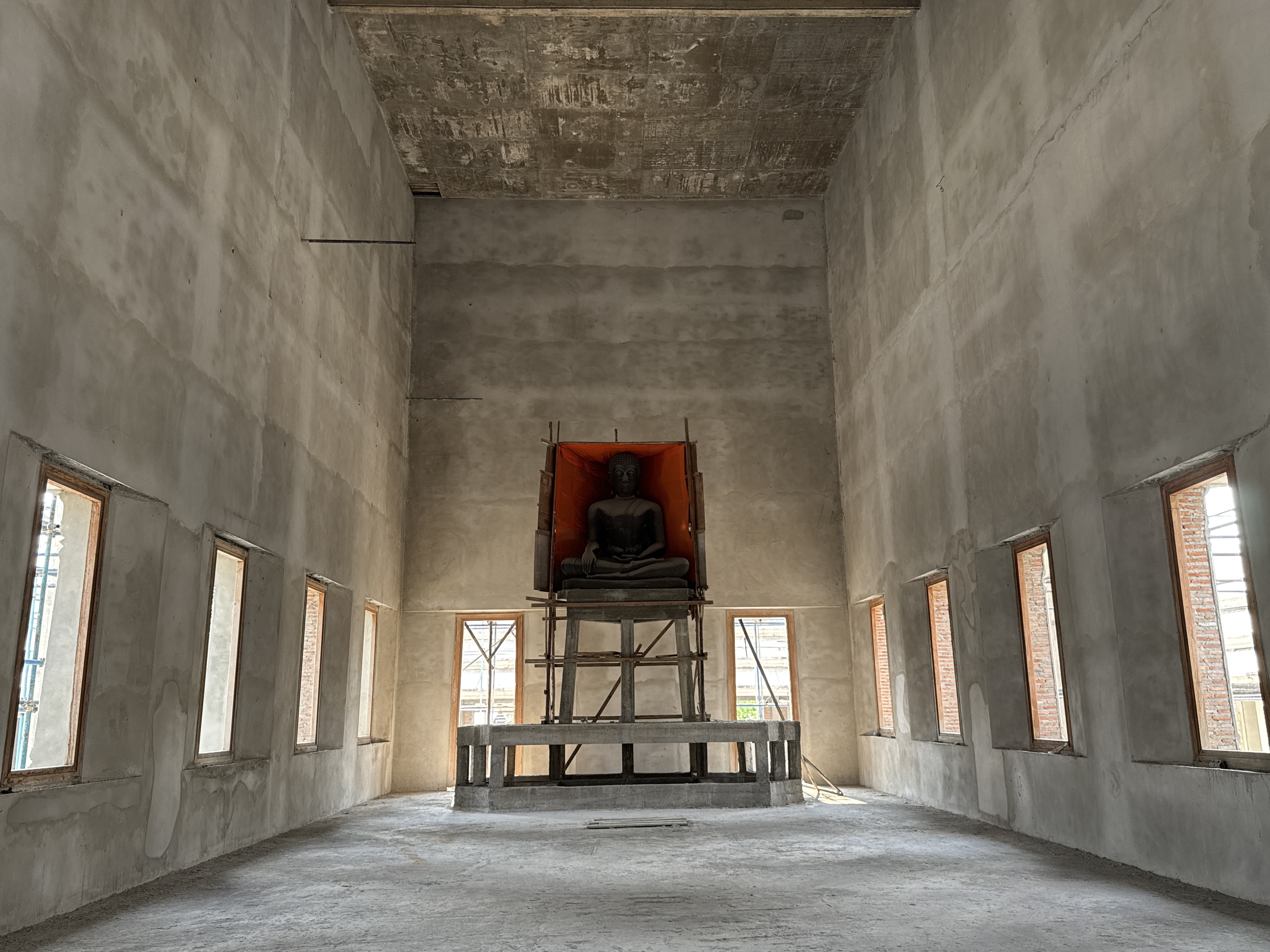 The ordination hall also has a number of votive tablets on display. Many Buddha images and Hindi deities had been placed in increments around this building. The images are in a variety of poses, but standing and walking Buddha images are a reoccurring theme at Wat Phraya Tikaram (which is uncommon in Ayutthaya). The bell tower is situated in front of the ordination hall. It has windows in ...