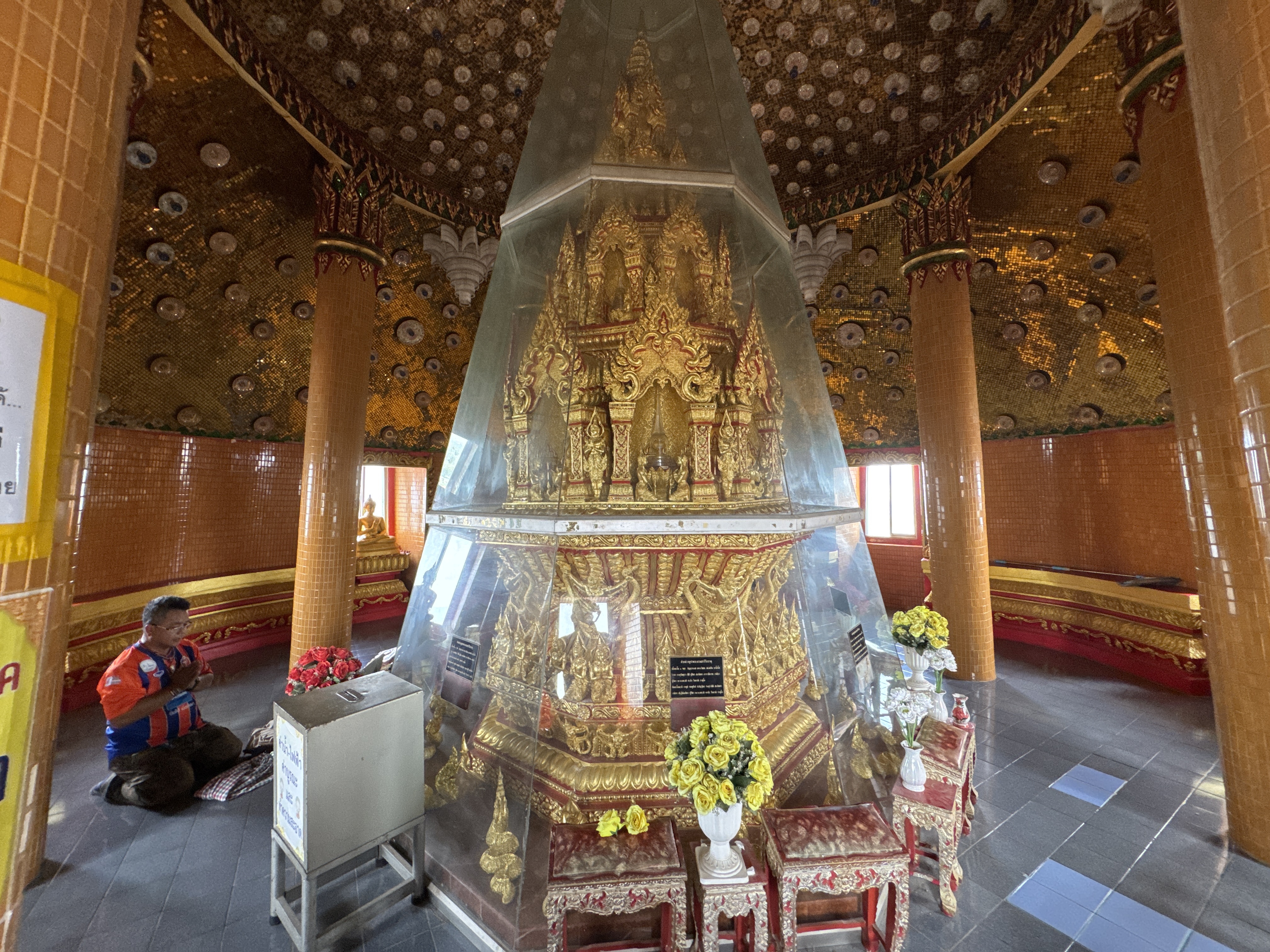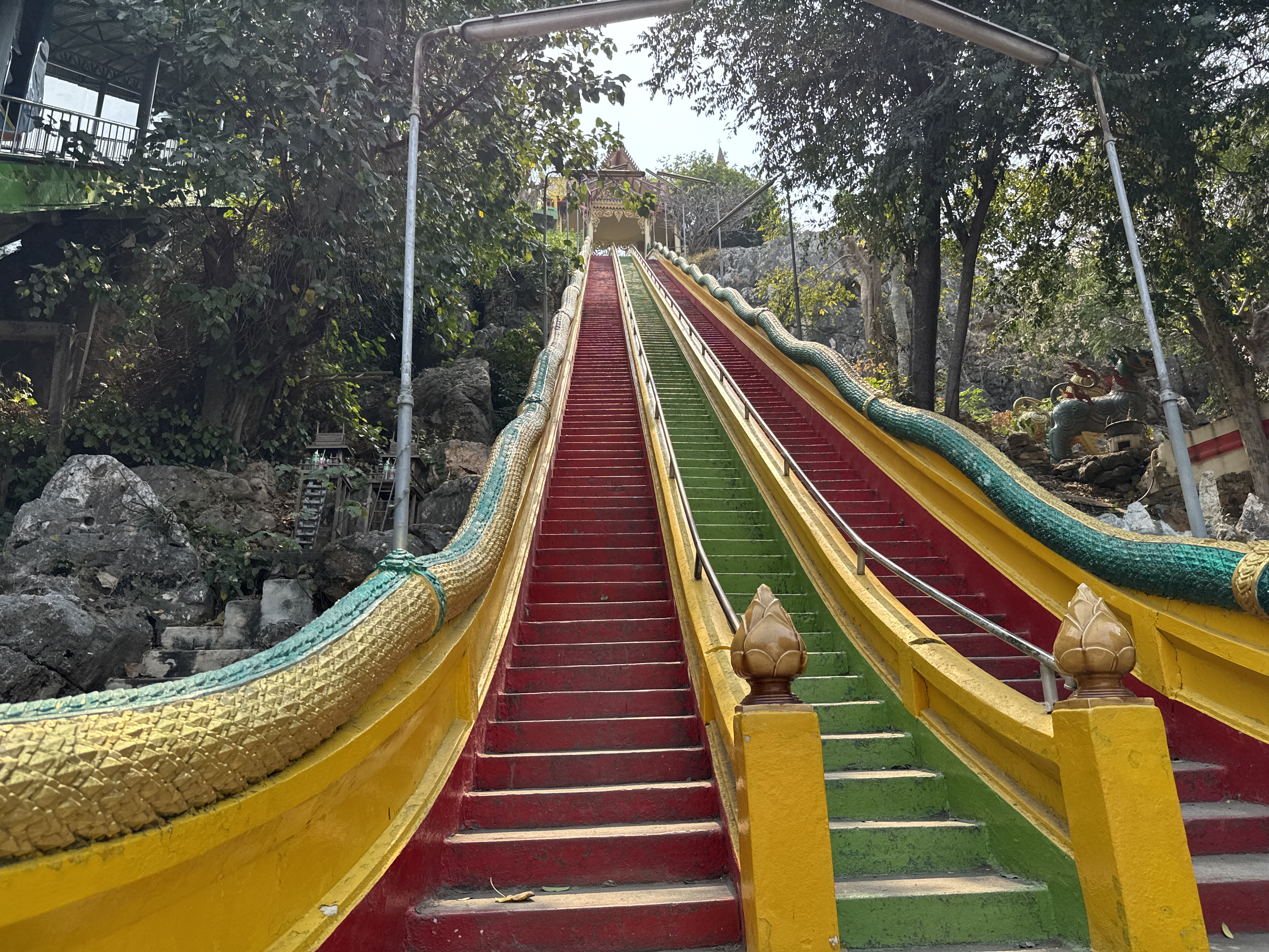 This temple plays host to an enormous golden Buddha, visible for miles around, known as “Chin Prathaporn”. It was constructed in 1973. It is an amazing 18 meters high and 10 meters wide with many local Thai residents coming up daily to make merit here. There is a 157 step climb to the temple or a cheap tram ride from the base of the hill.