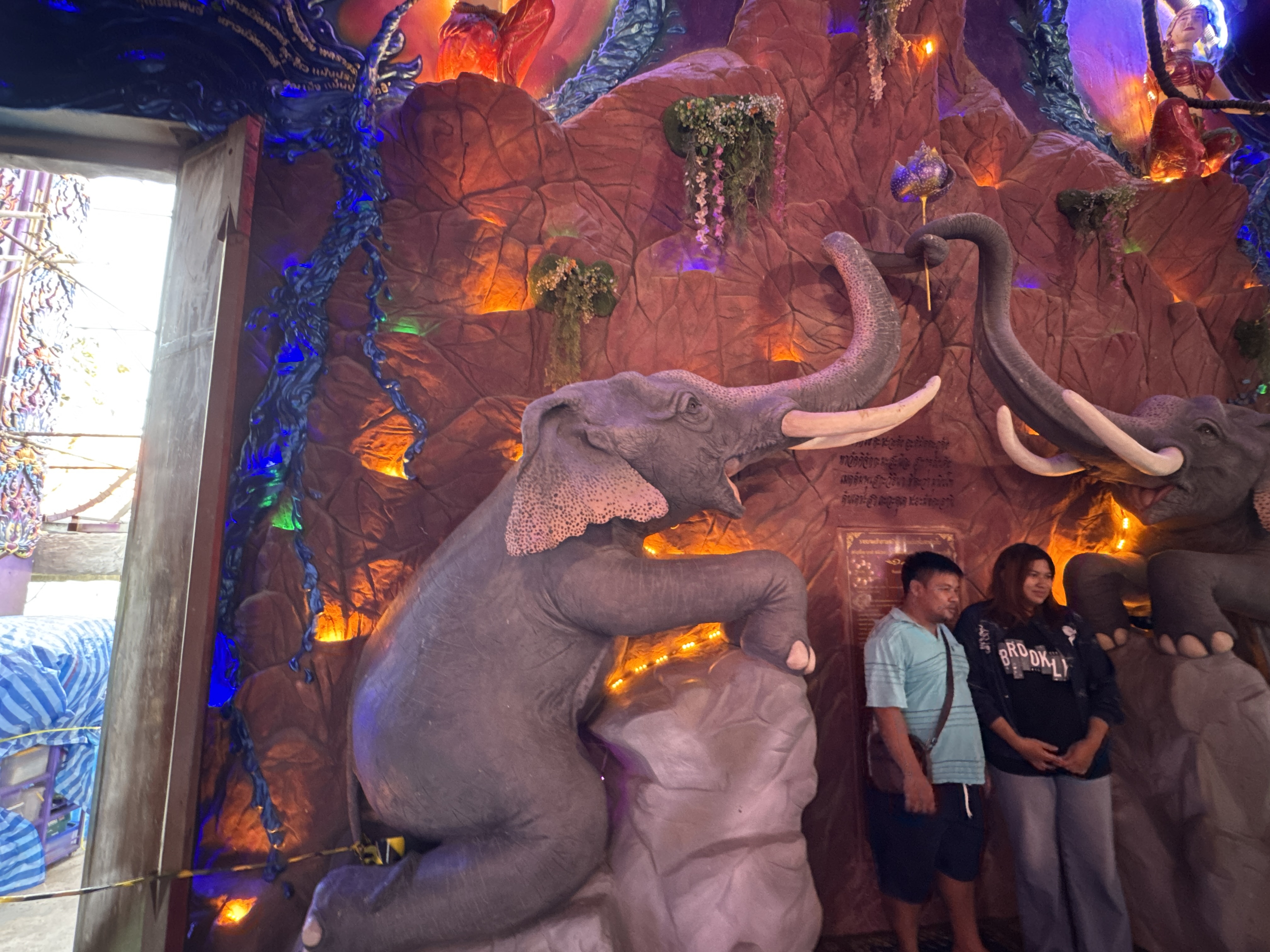 These buildings and statues are fairly recent additions to the temple. After admiring them for a little while the main attraction to the temple is behind the ordination hall in a very large cave. The cave was the original temple and was used for meditation by worshipers. It houses a 100 year old Buddha statue, many relics that have been brought into the area from Myanmar as well as interesting rock formations inside the cave.