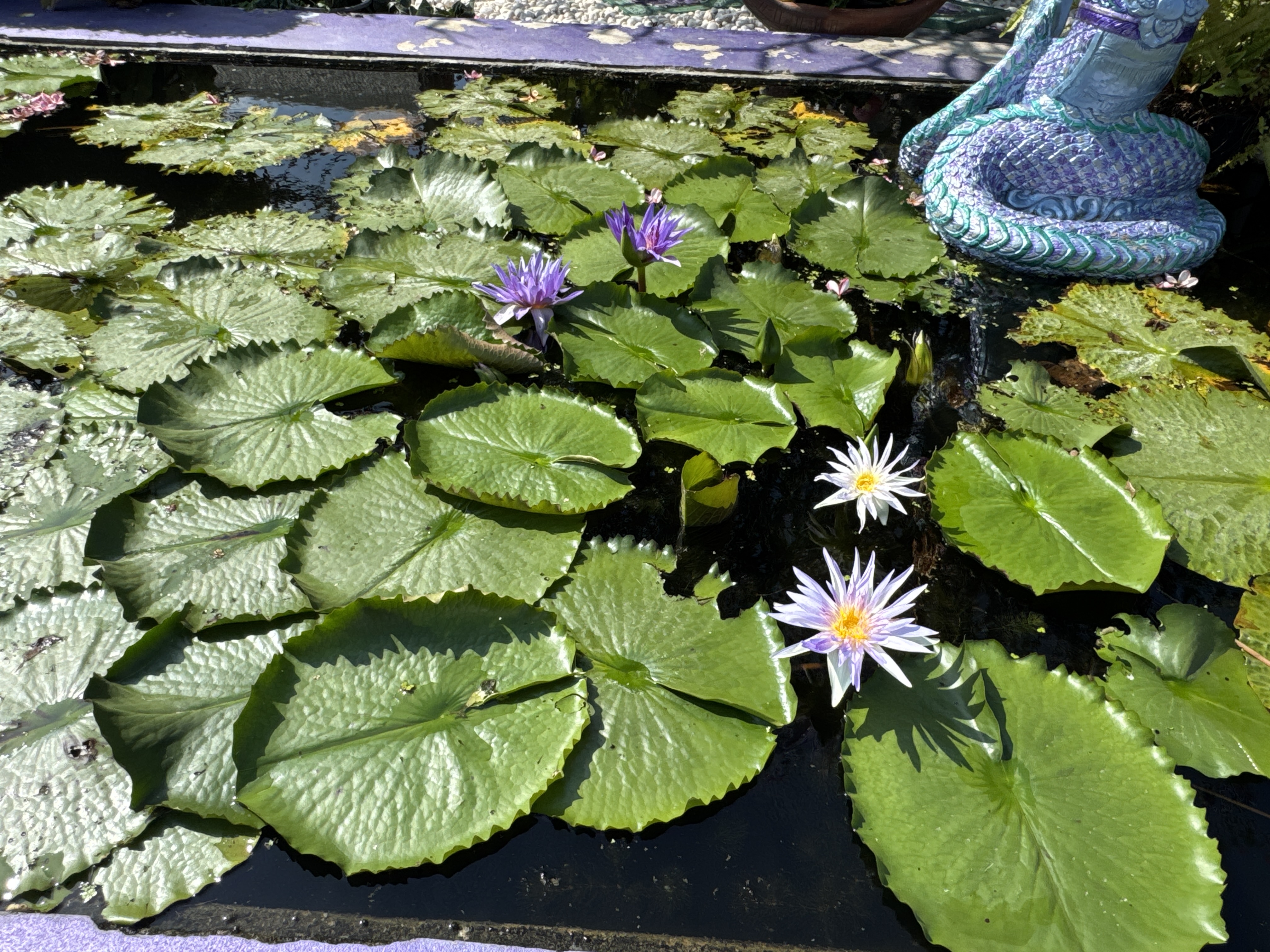 When you first come to the temple you are greeted with manicured gardens. The next thing you see is a brown reclining Buddha and a large seated Buddha made from the same stone. The ordination hall and Wihan also have the brown stone with Cambodian styling to the buildings.
