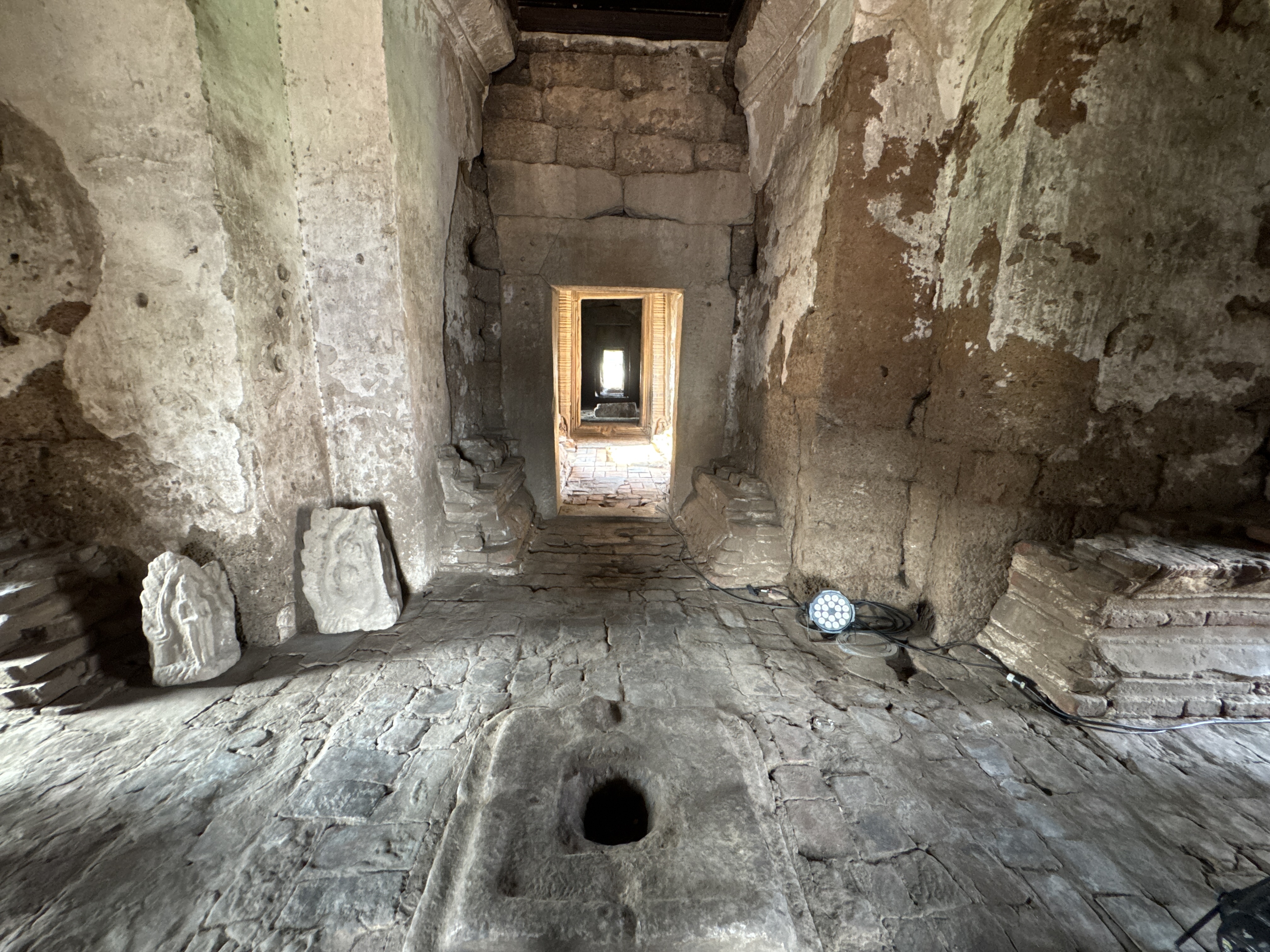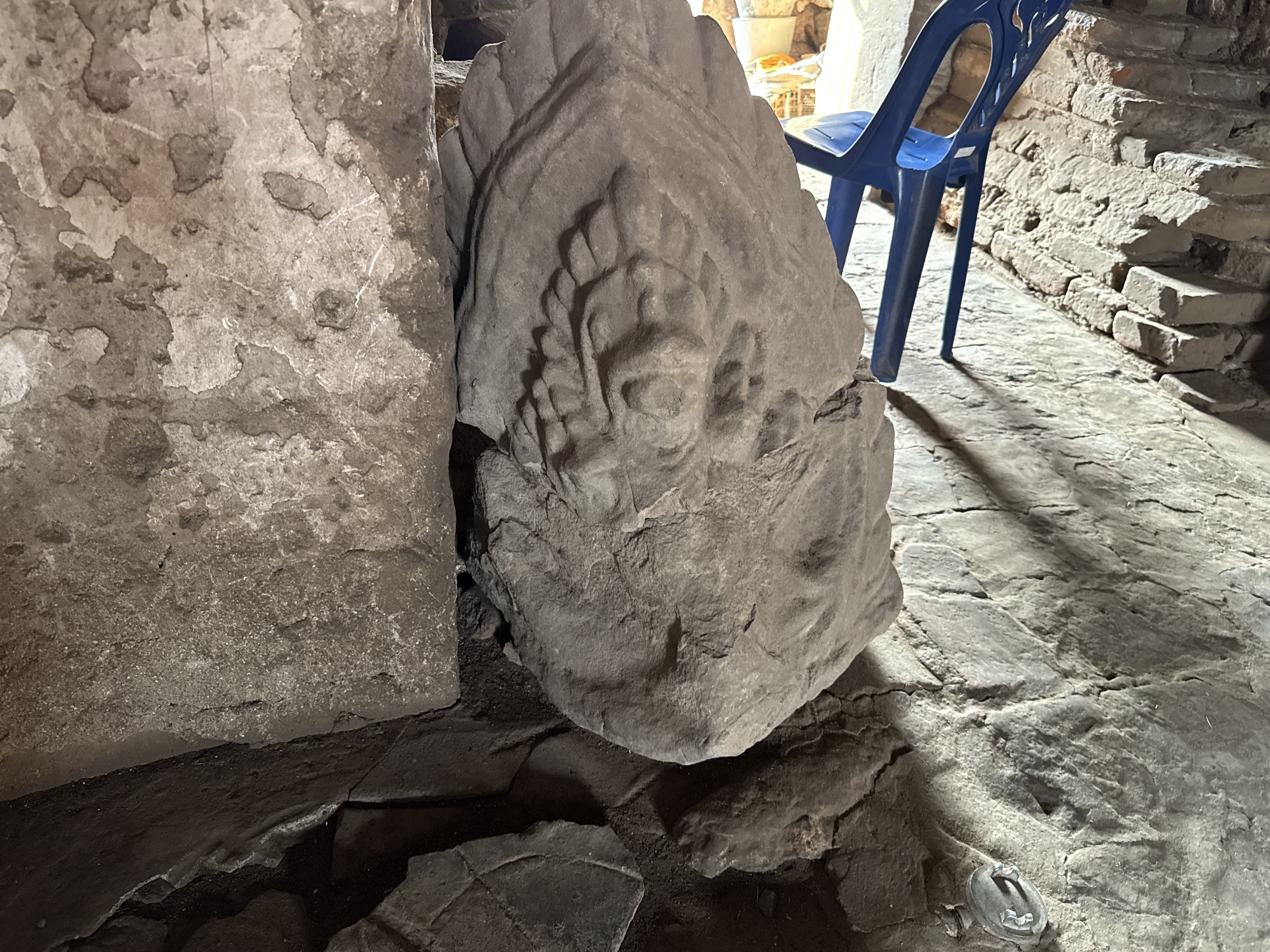 The main sermon hall sits on top of a large mound, which may have been the remains of an older building. Two gold painted Buddha images sit in the taming mara poses on the main altar.