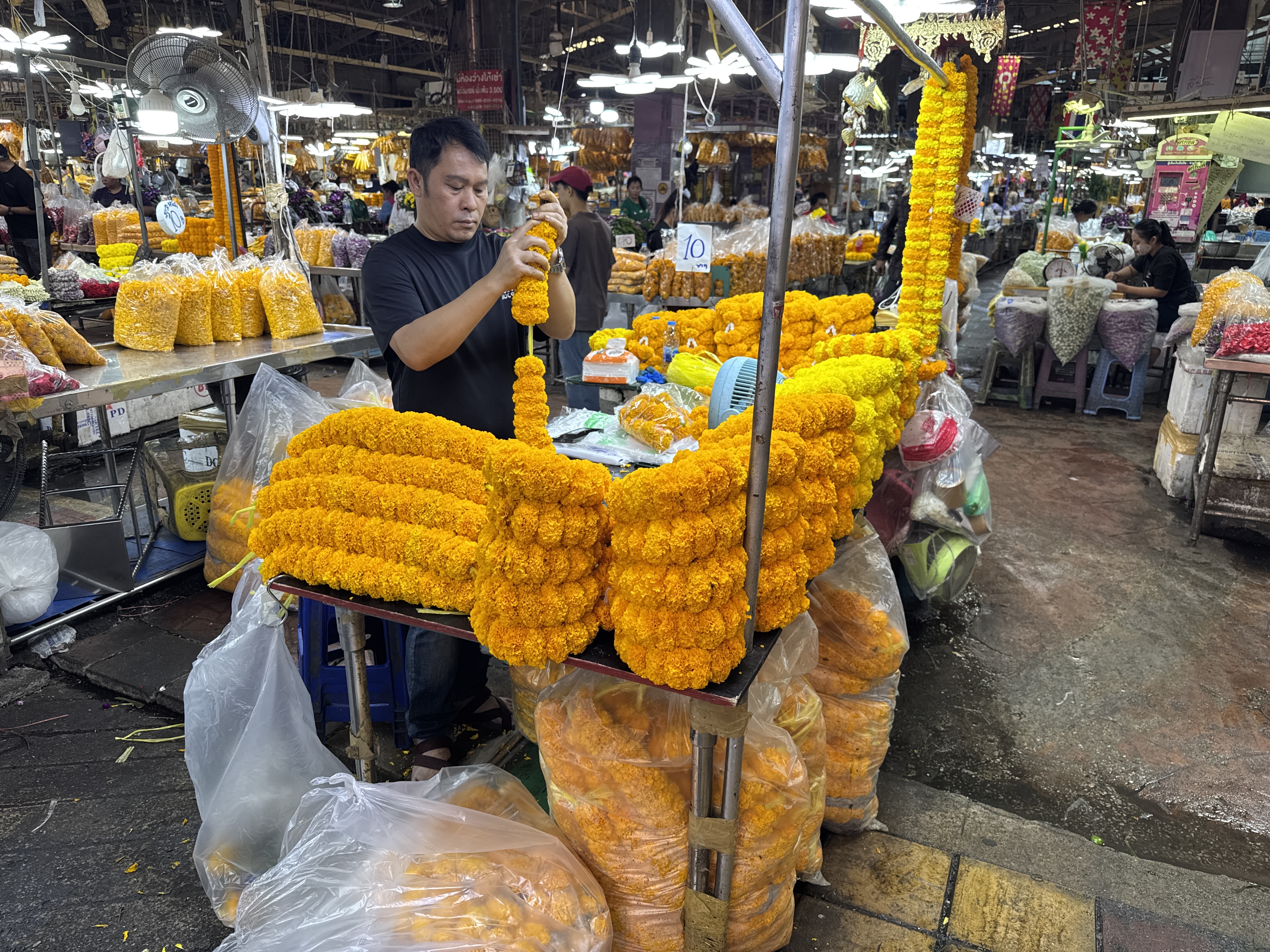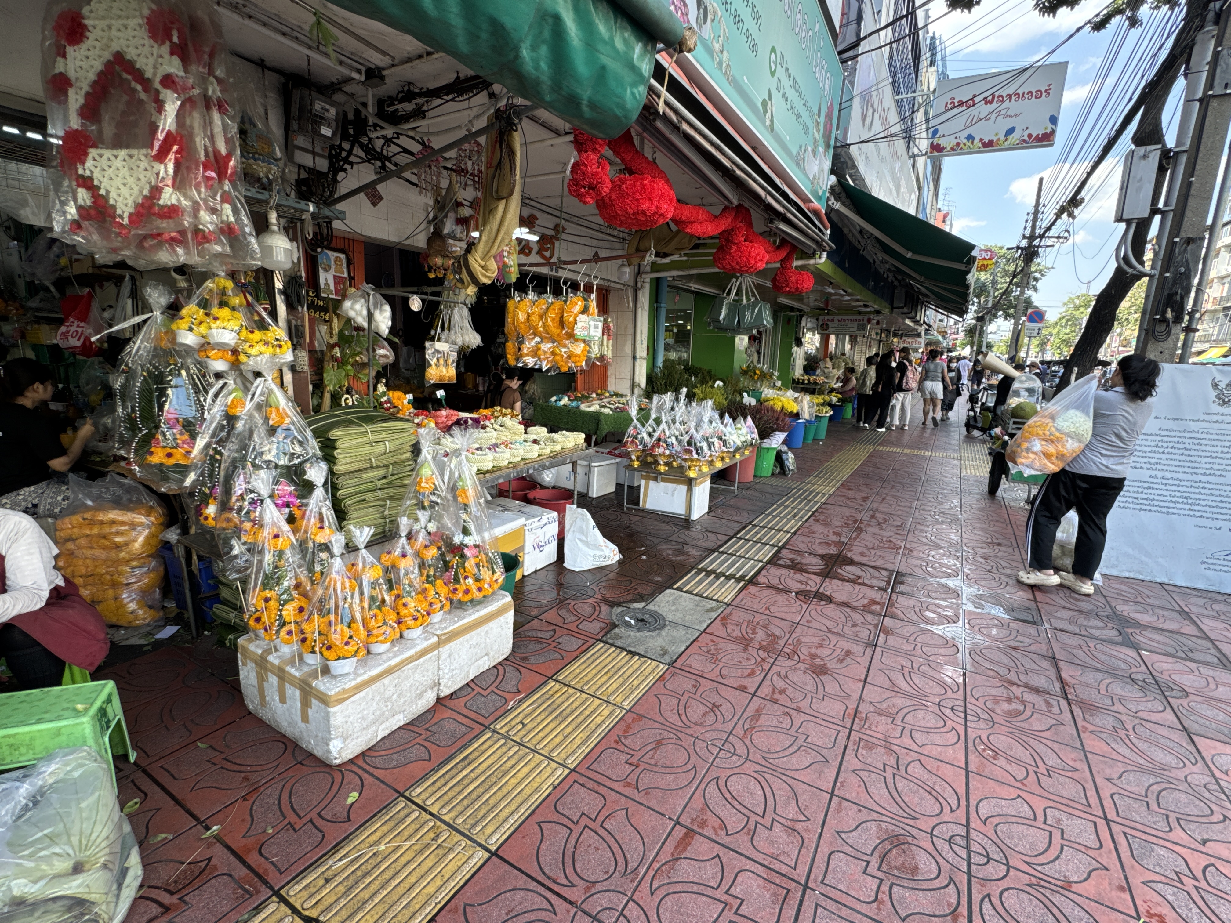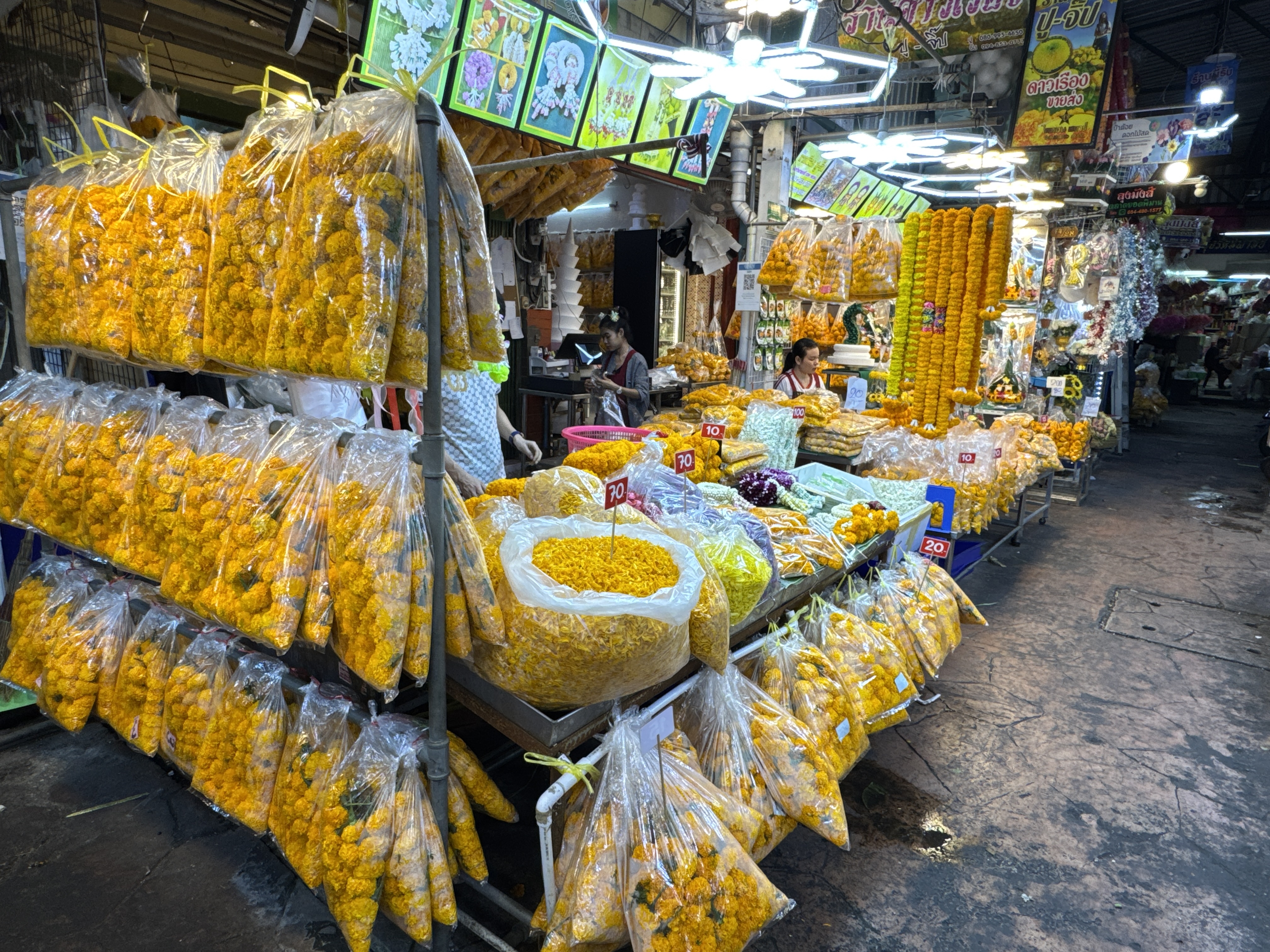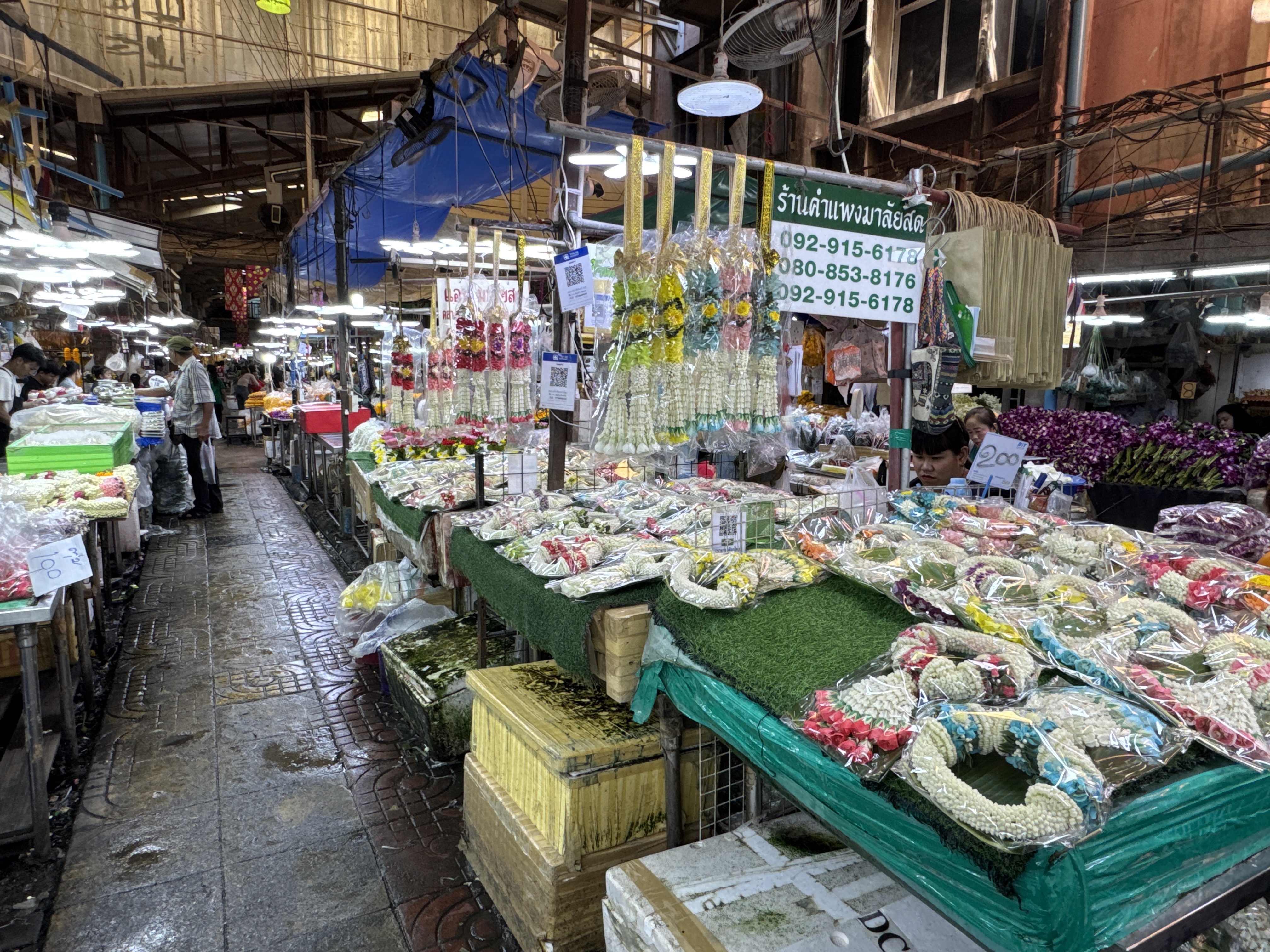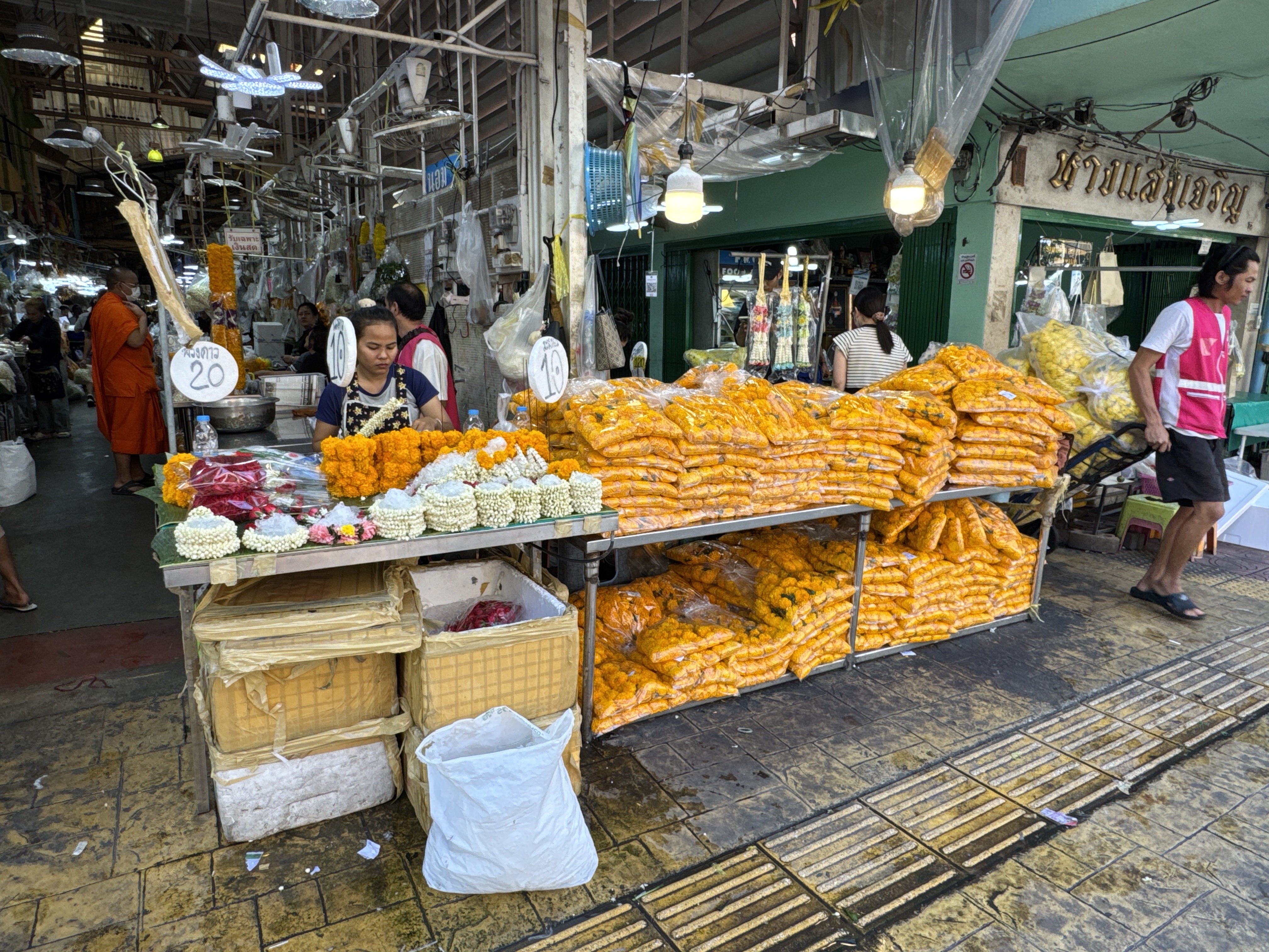 By the reign of King Rama V (1868–1910), it had evolved into a major fish market. The strong odors from the fish trade eventually prompted changes, and in the mid-20th century (around the 1950s–1960s), the market transitioned to selling produce, fruits, vegetables, and increasingly flowers. This shift occurred as wholesale produce moved to larger peripheral markets like Talat Thai, allowing flowers to become the dominant focus. The current flower and produce market has operated in this form for over 60 years.