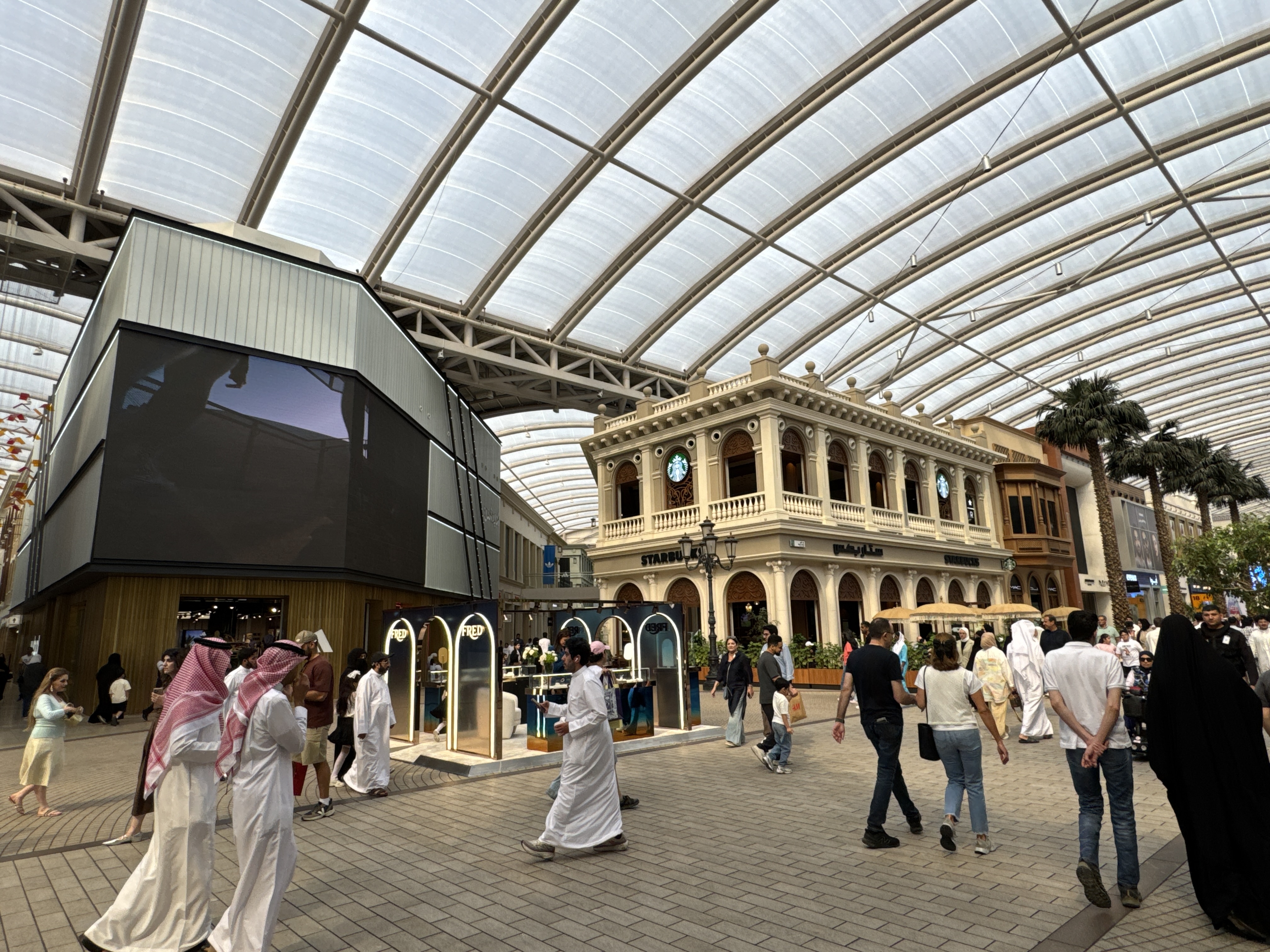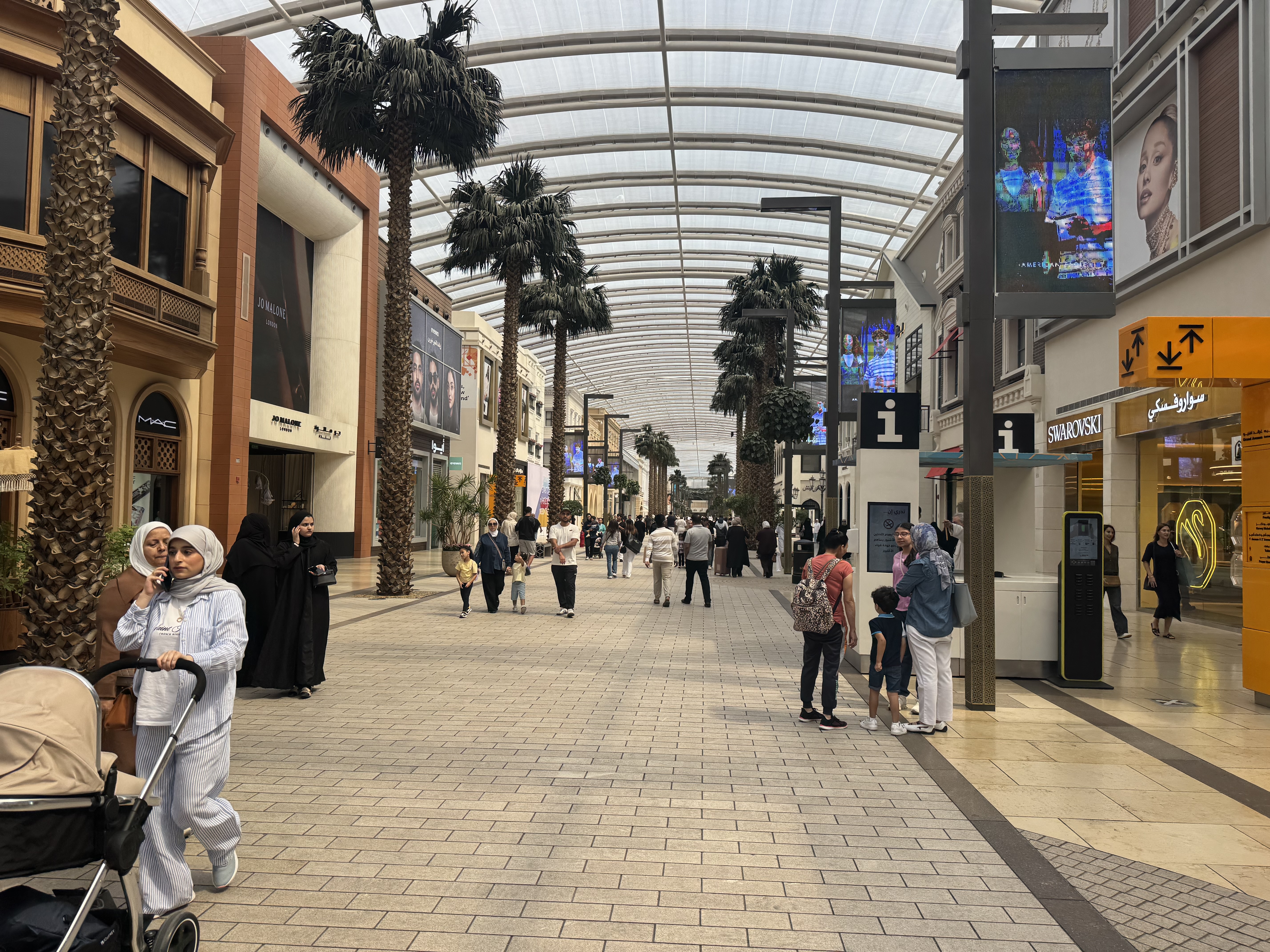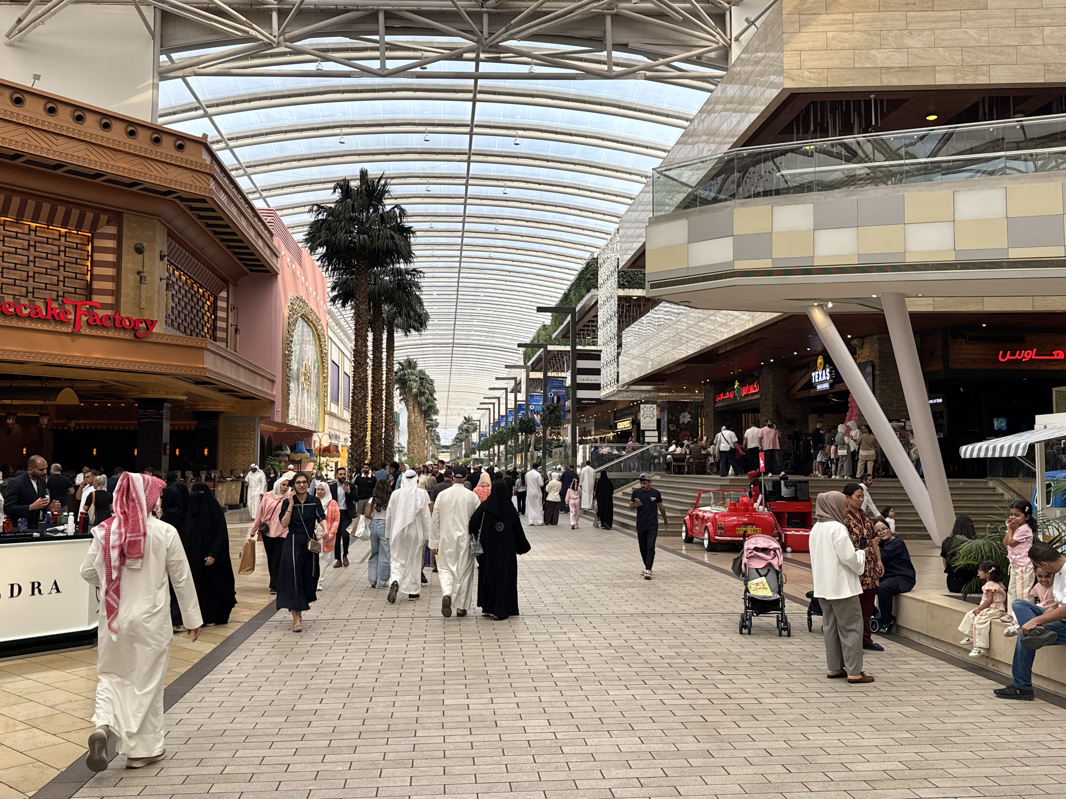 Developed by Mabanee Company and designed with input from Gensler, it features areas like Grand Avenue (a 640-meter promenade evoking Paris’s Champs-Élysées), Prestige (luxury brands), SoKu (youth fashion and tech like New York’s SoHo), The Souk (Kuwaiti heritage with spices and local dishes), and The Mall (international chains like Zara, H&M, and Carrefour).