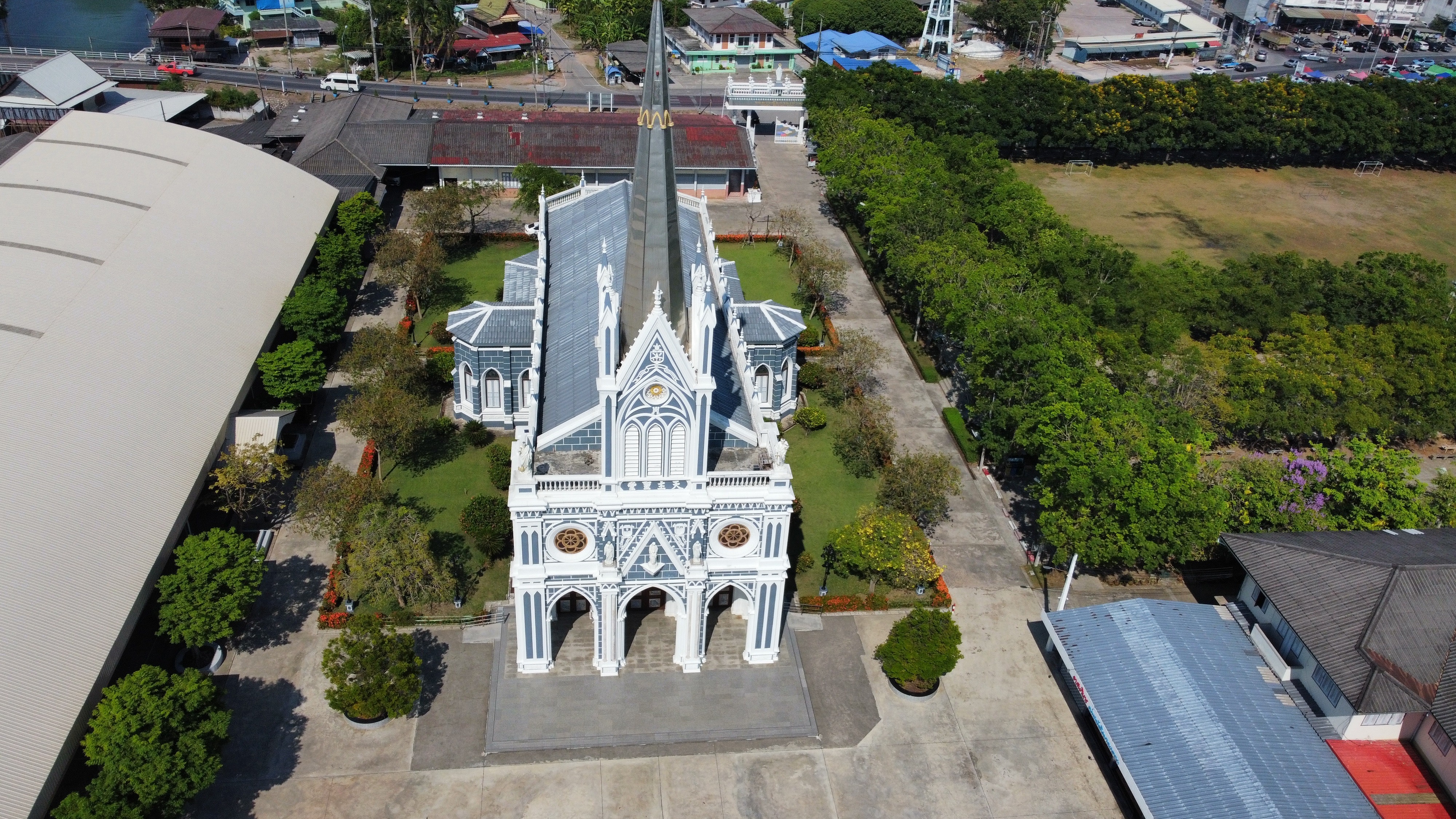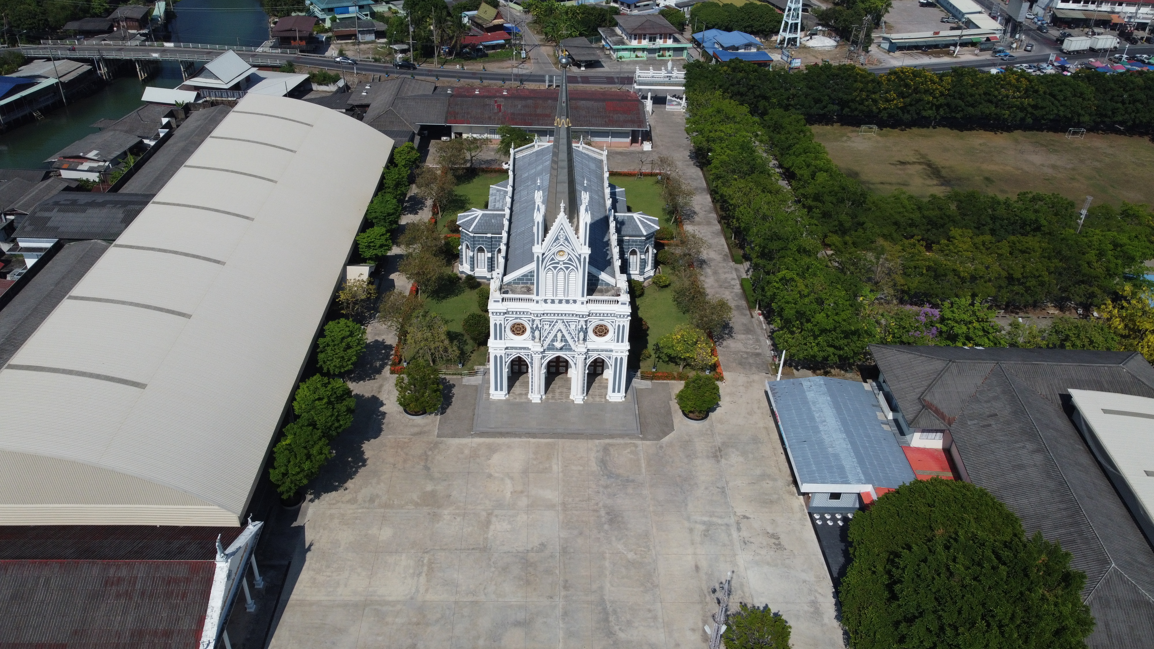 The Cathedral of the Nativity of Our Lady อาสนวิหารแม่พระบังเกิด บางนกแขวก, also known as Bang Nok Khwaek Cathedral, stands as a serene and striking landmark along the banks of the Mae Klong River in Bang Nok Khwaek subdistrict of Bang Khonthi district, Samut Songkhram Province, Thailand.