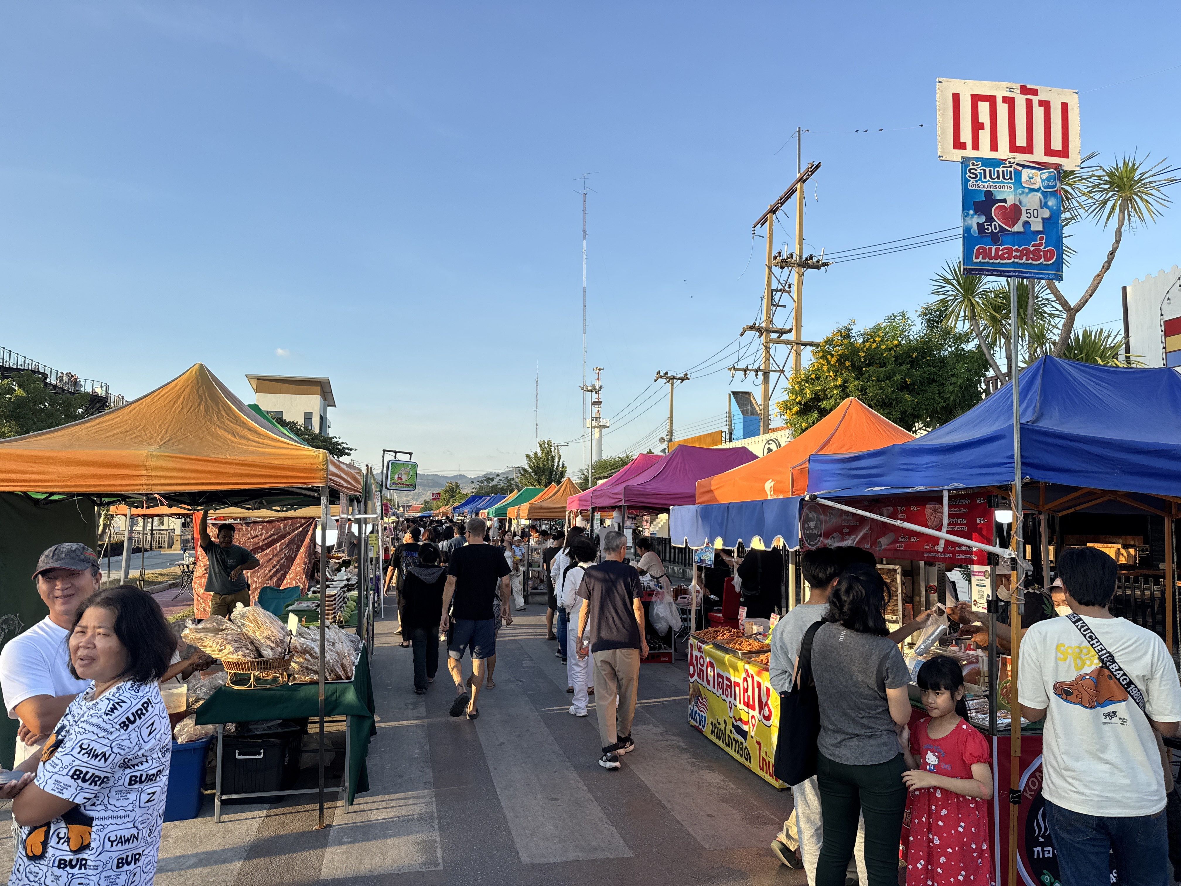 It’s known as Kanchanaburi Walking Street and Song Kwai Night Market. It is a popular place for the locals and tourists to spend an evening. Prices are very reasonable and it’s a must see if you are in the area.