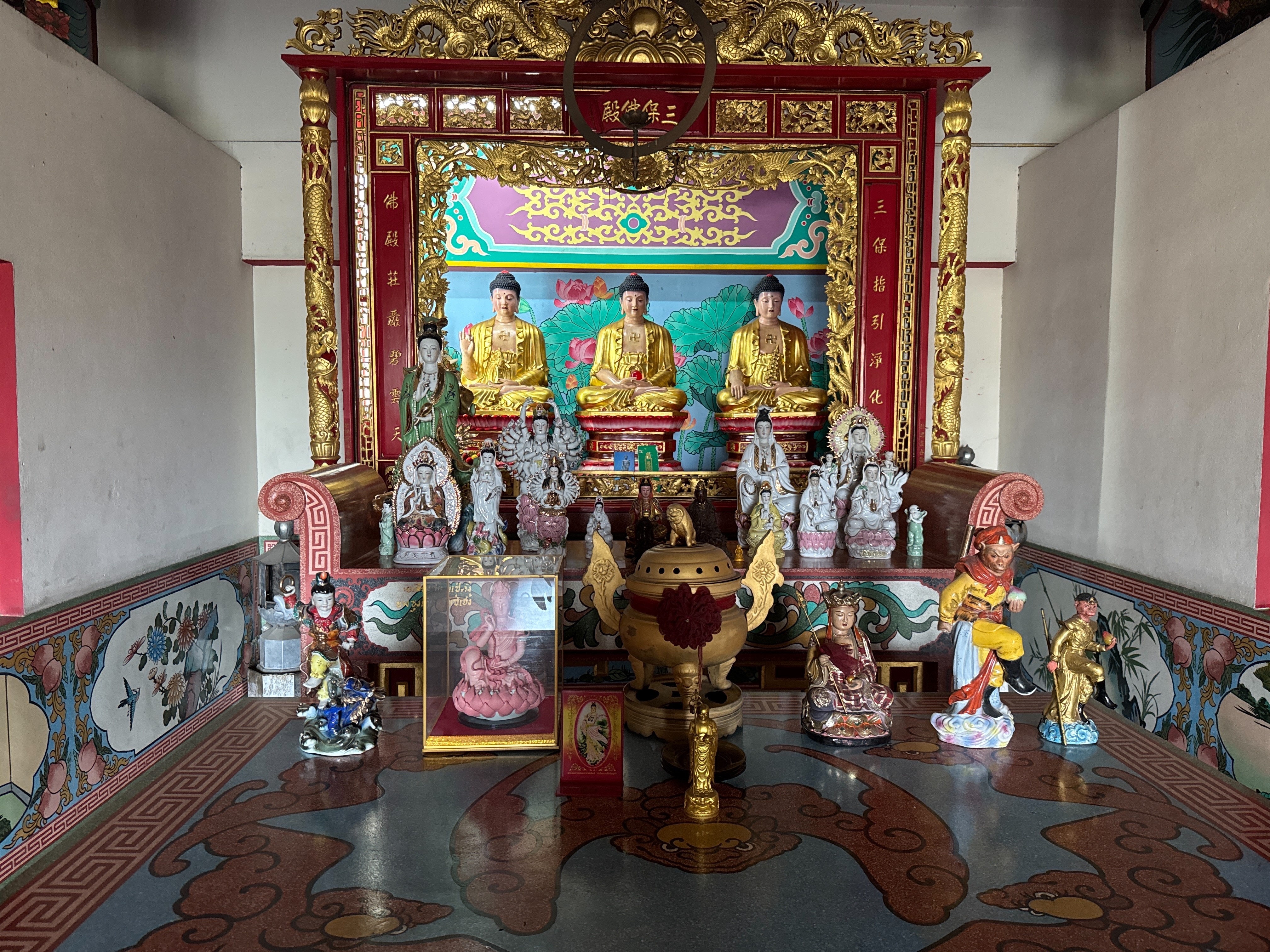 Located on the northern bank of Khlong Samrong in Tambon Bang Phli Yai, not too far from Wat Bang Phli Yai Nai. It was constructed around 1824 and originally called Wat Klang before changing to Wat Rat Sattha Tham and eventually Wat Bang Phli Yai Klang.