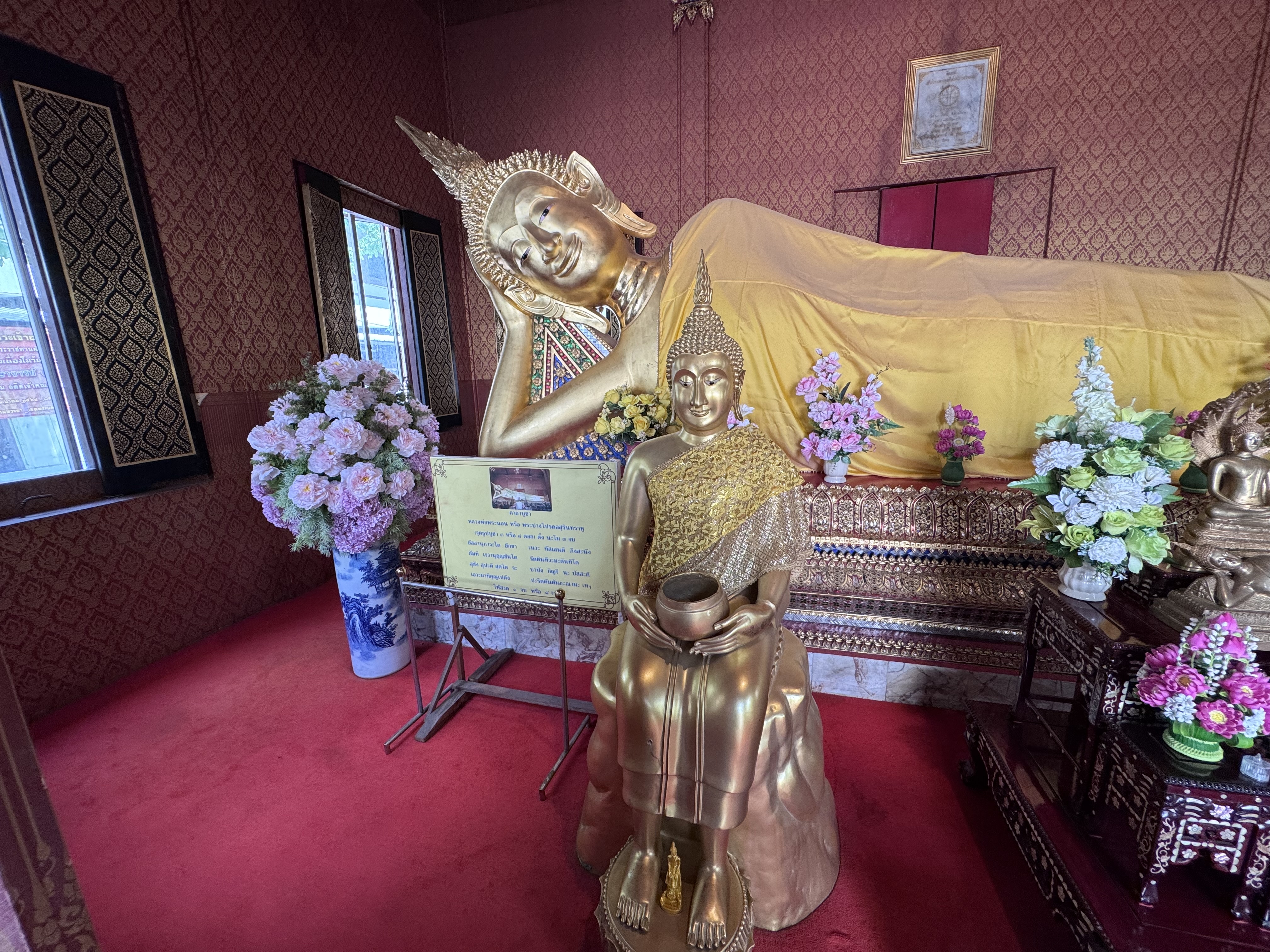 The temple contains an immense reclining Buddha image of approximately 53 metres long known as Somdet Phra Sakayamuni Si Sumet Bophit. There are 4 stories inside the image itself. The Buddha is around 7 meters longer than the more famous image at Wat Pho in Bangkok.