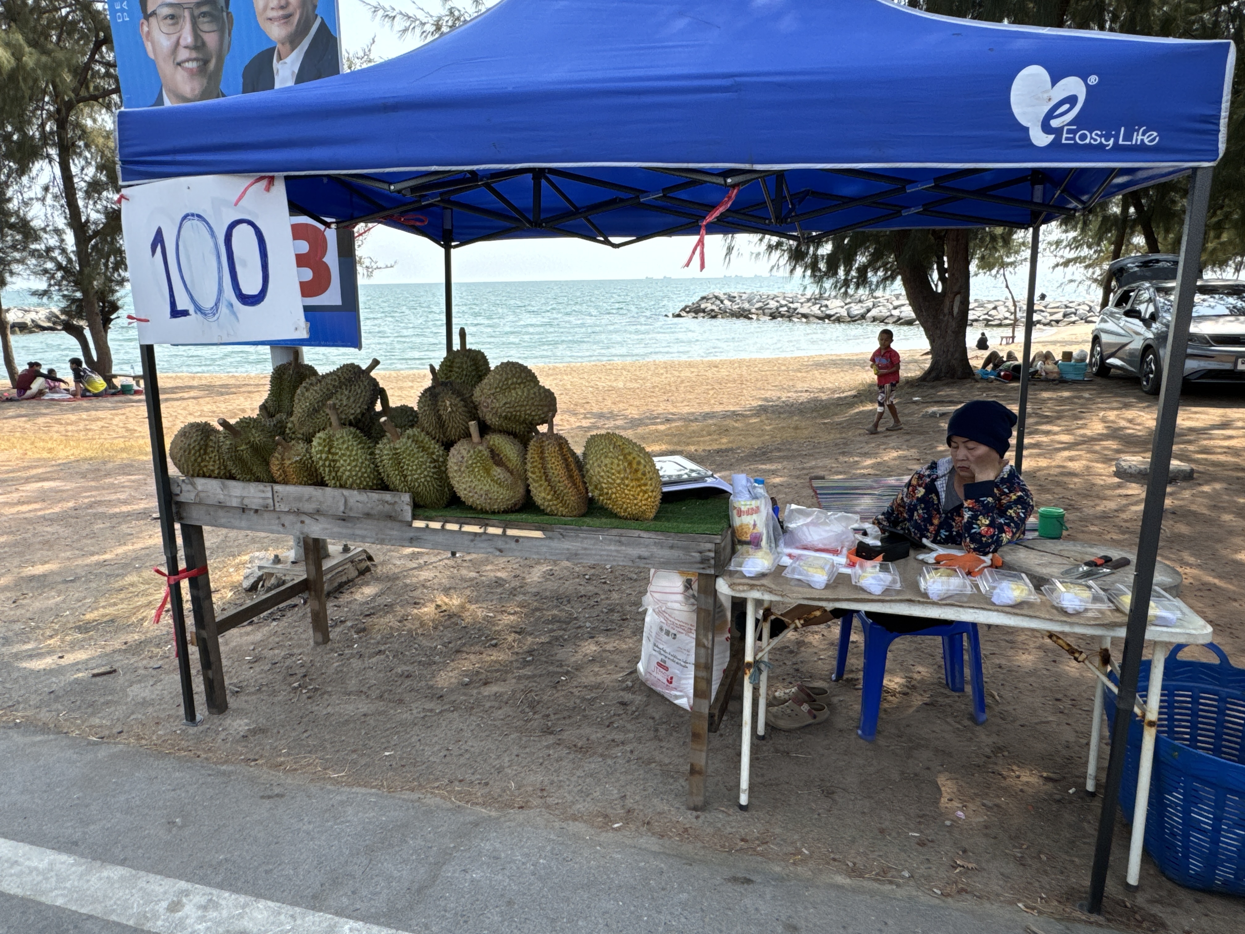 Situated in the Tha Pradu subdistrict along Taksin Maharat Road, this beach serves as a popular local escape rather than a major tourist destination, offering a genuine Thai seaside vibe where families, locals, and visitors from nearby Bangkok come to unwind, enjoy fresh seafood, and soak in the relaxed atmosphere.