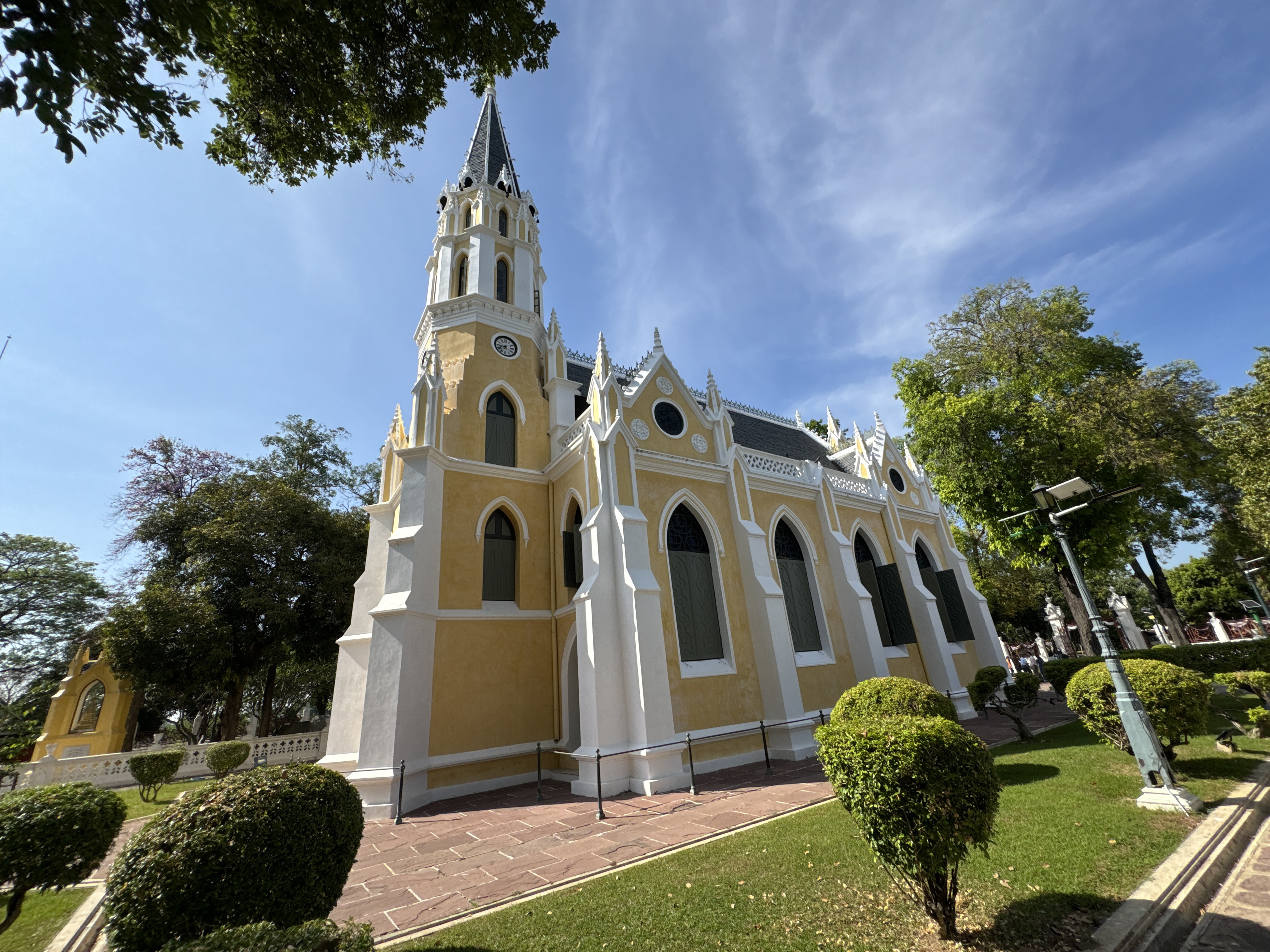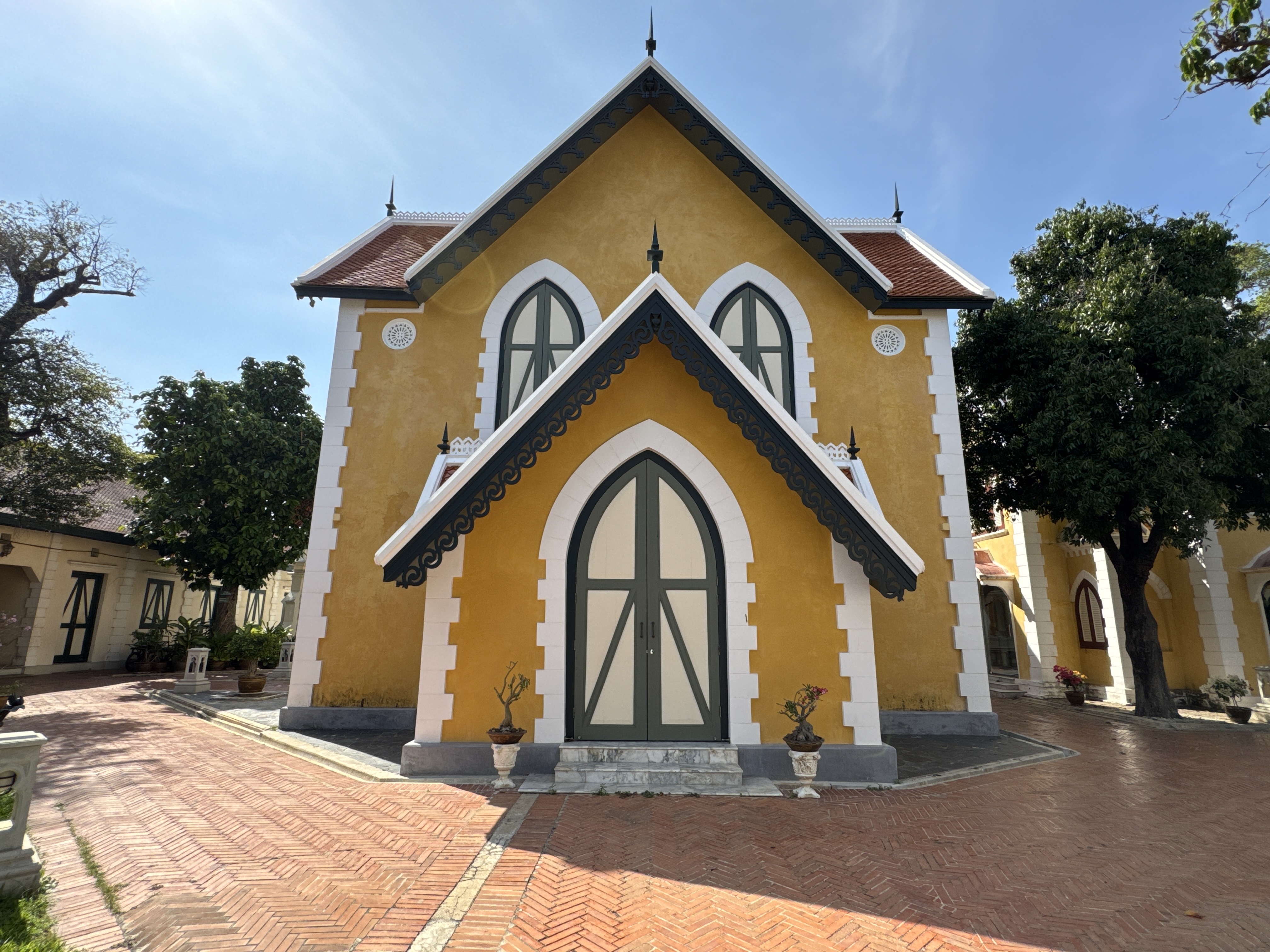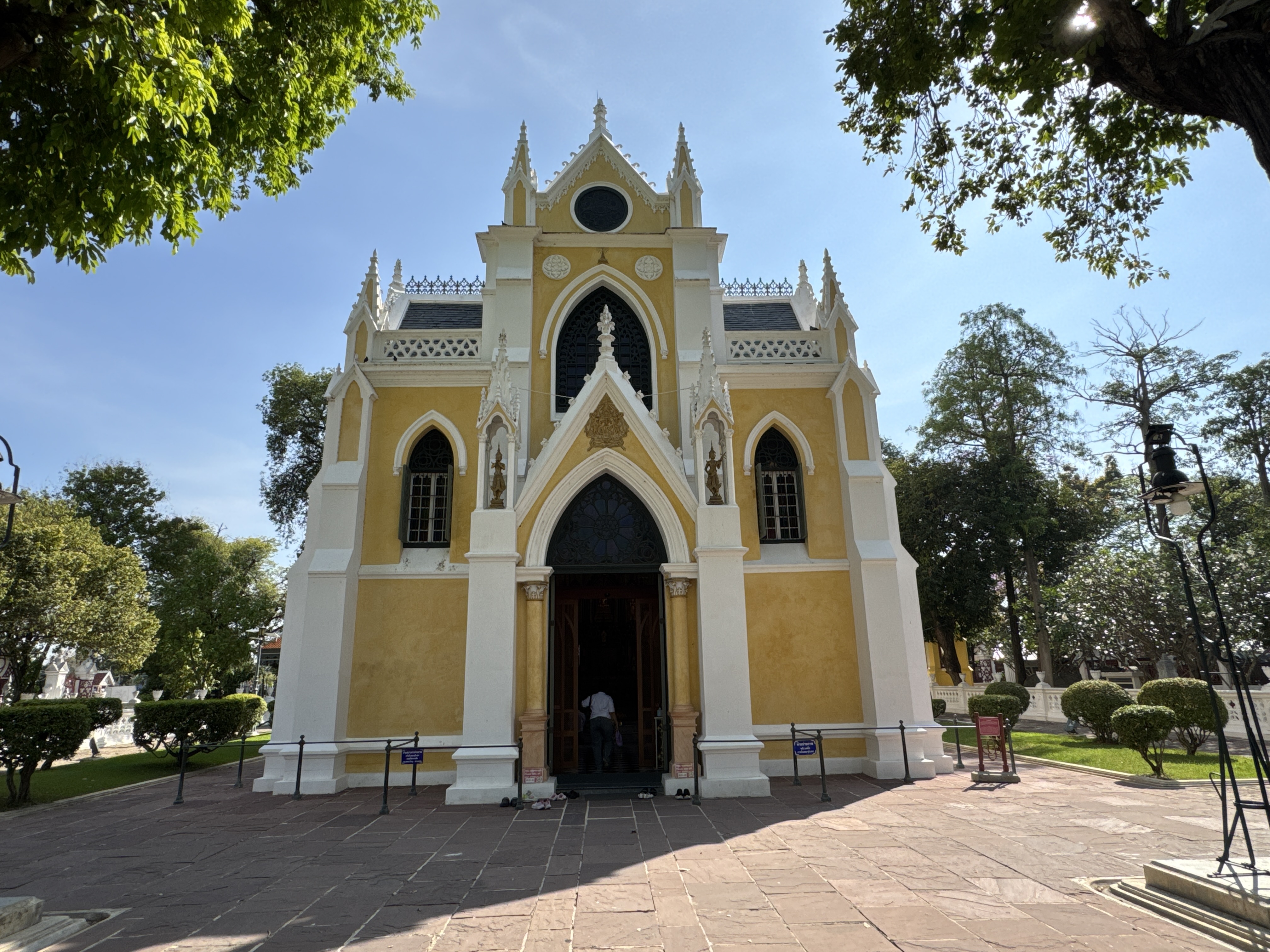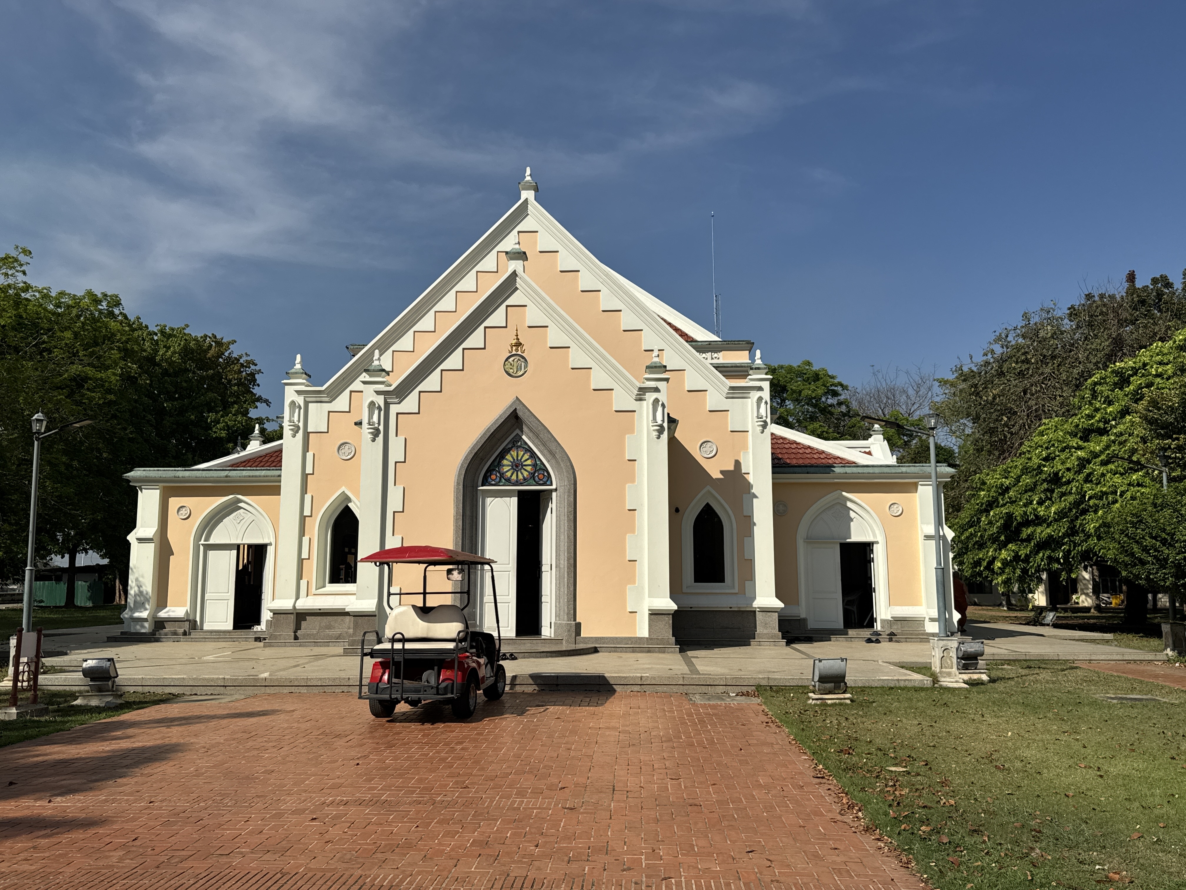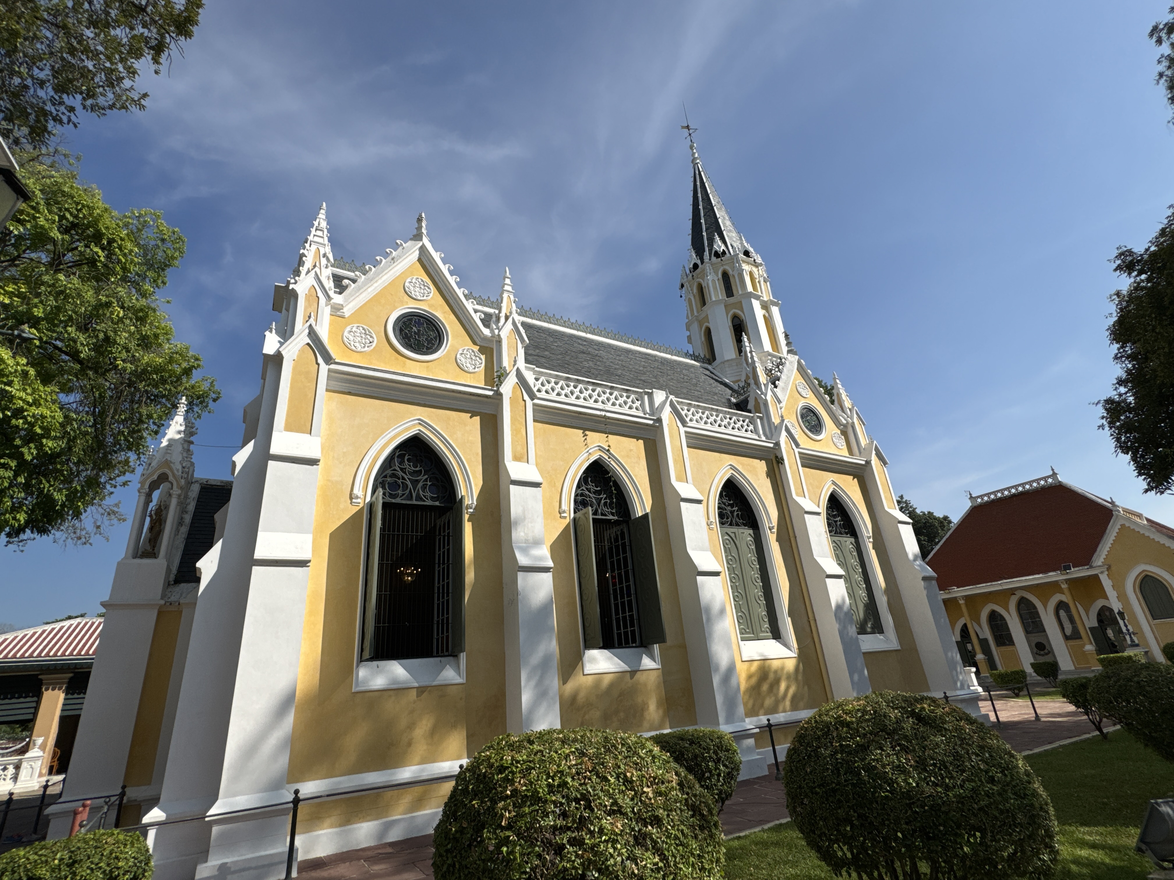 Wat Niwet Thammaprawat Ratchaworawihan วัดนิเวศธรรมประวัติราชวรวิหาร is a Buddhist temple (wat) of the Dhammayut Order, located within the grounds of the Bang Pa-In Royal Palace in Thailand's Phra Nakhon Si Ayutthaya Province. Founded in 1878, it is remarkable among Thai Buddhist temples in that its architecture mimics that of a European church, being built in the Gothic Revival style.
