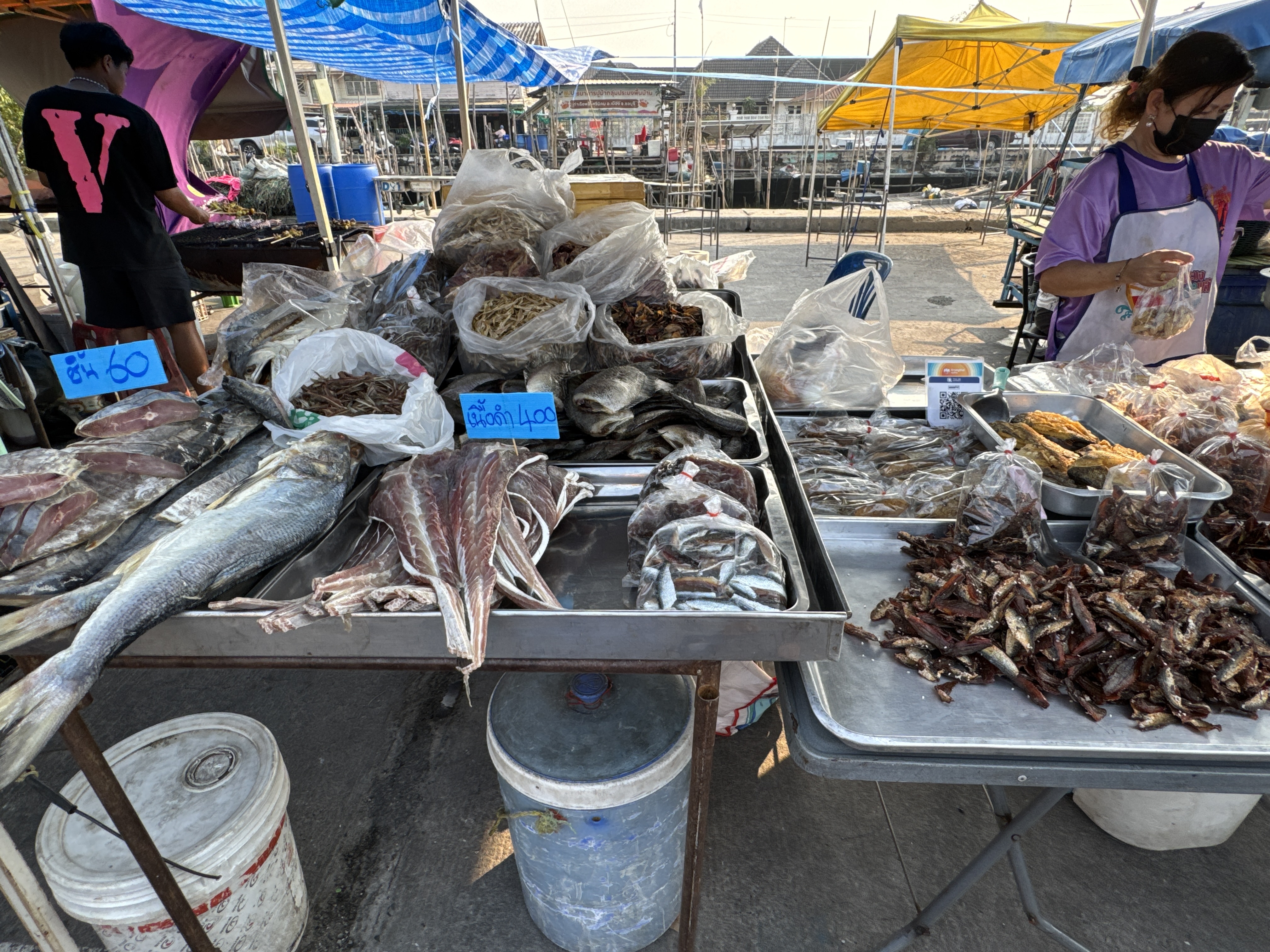 This lively market features fresh seafood directly from local fishermen, allowing visitors to purchase raw items and have them cooked on-site or enjoy ready-to-eat grilled, steamed, and fried dishes. It stands out as a favorite among locals and visitors for its affordable, high-quality offerings, including shrimp, crab, squid, various fish such as grilled tilapia or sea bass, clams, sea urchin eggs, and more, alongside sides like som tam (papaya salad), yam dishes, and snacks.