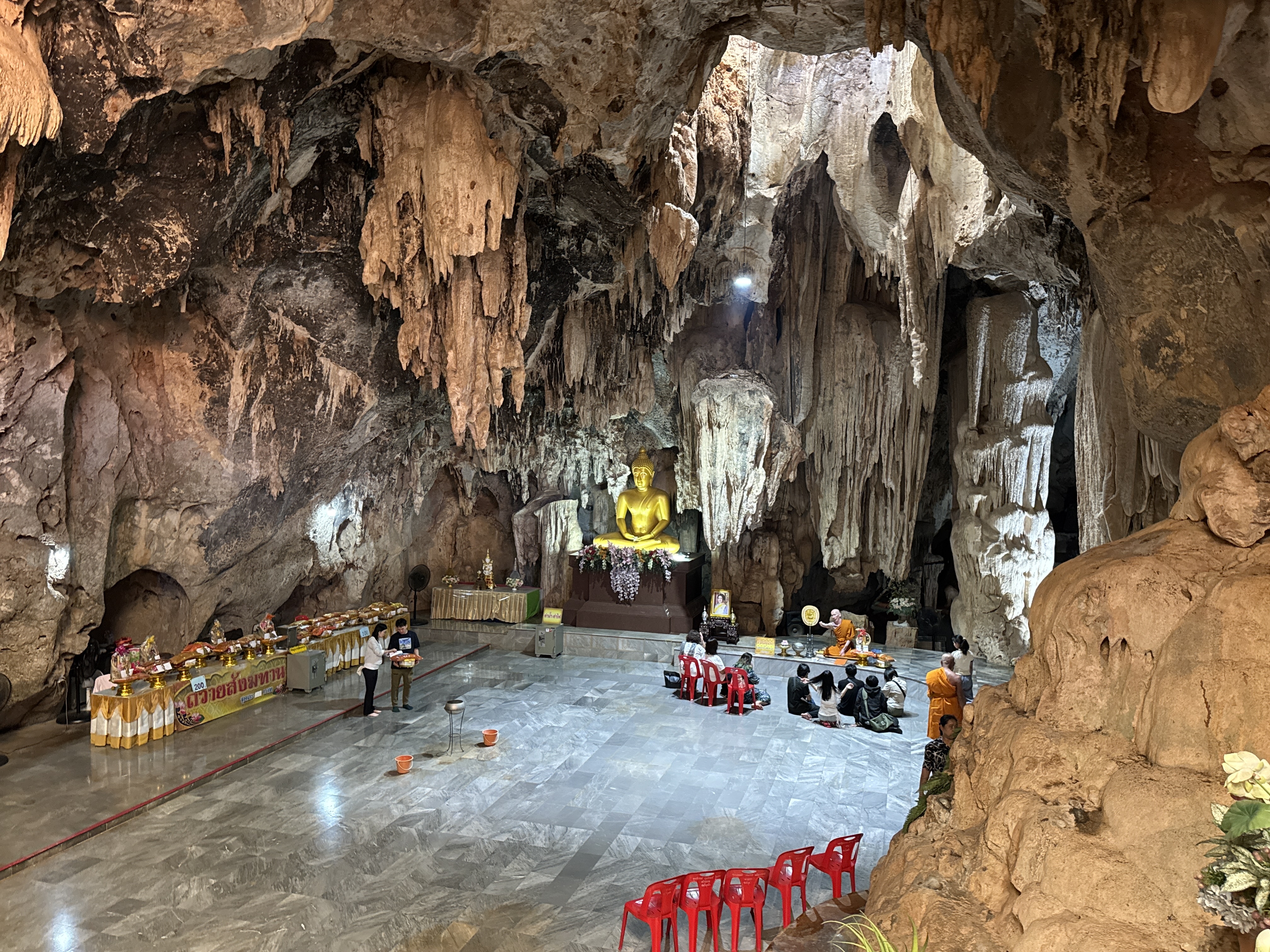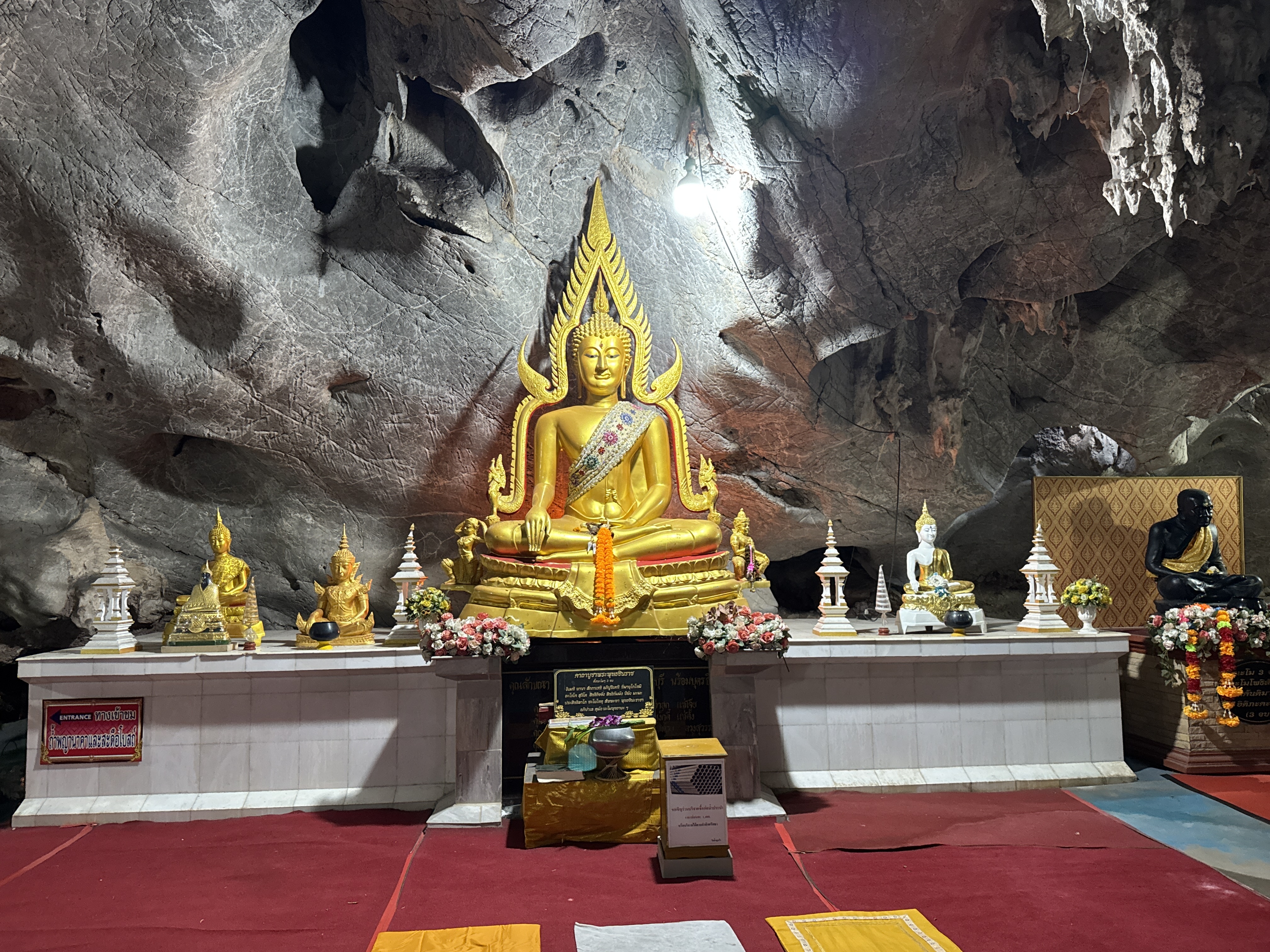 These buildings and statues are fairly recent additions to the temple. After admiring them for a little while the main attraction to the temple is behind the ordination hall in a very large cave. The cave was the original temple and was used for meditation by worshipers. It houses a 100 year old Buddha statue, many relics that have been brought into the area from Myanmar as well as interesting rock formations inside the cave.