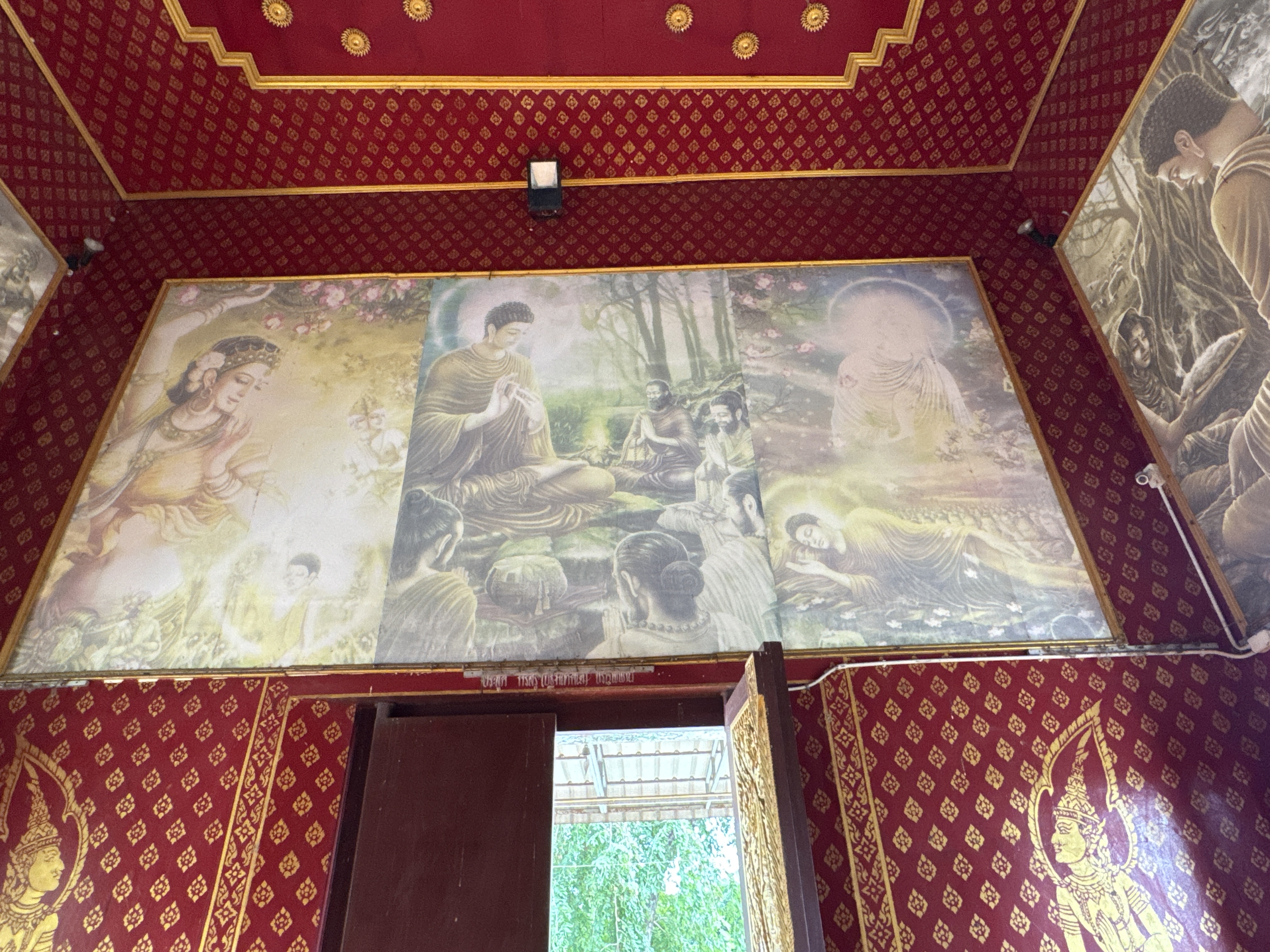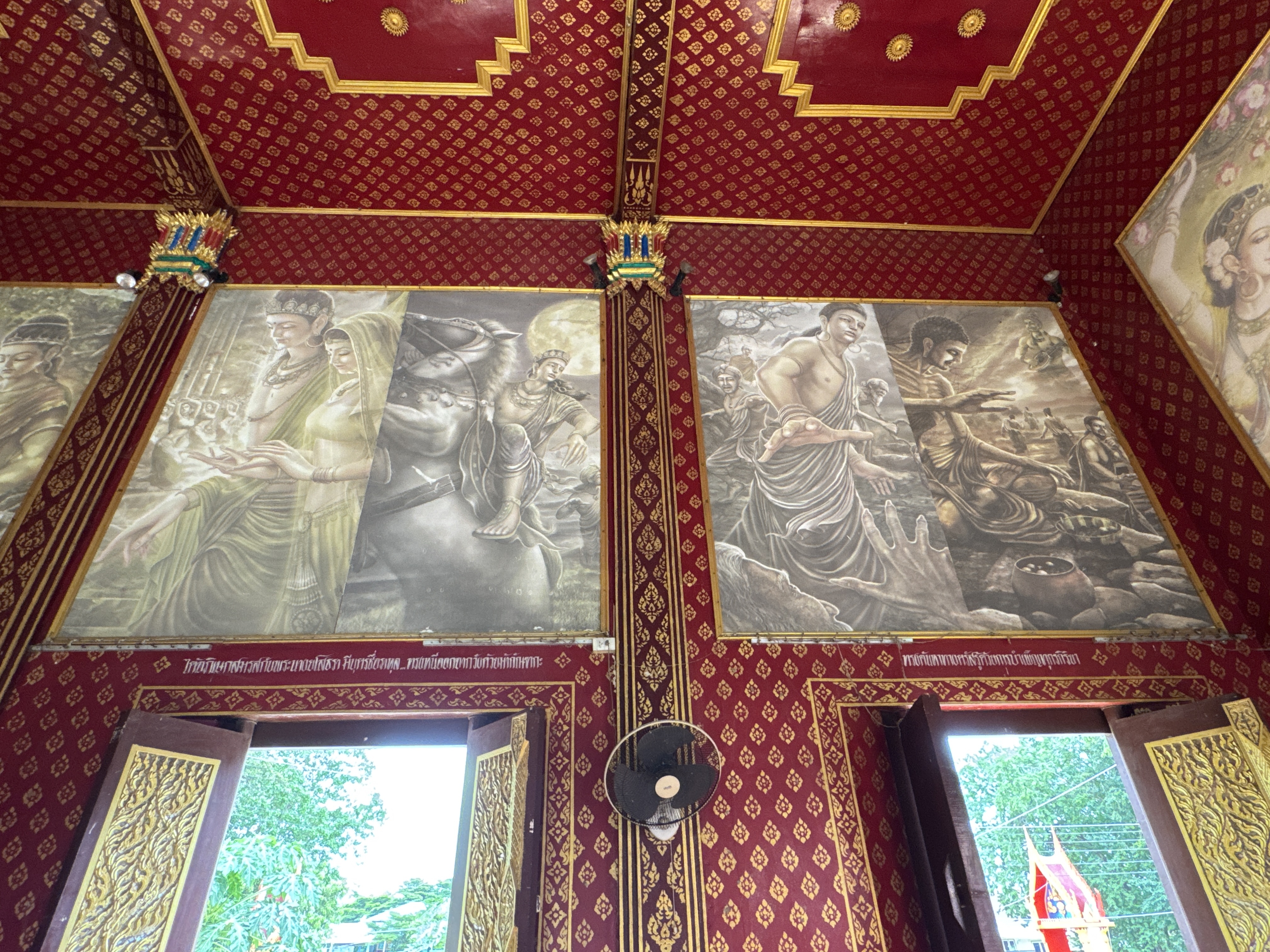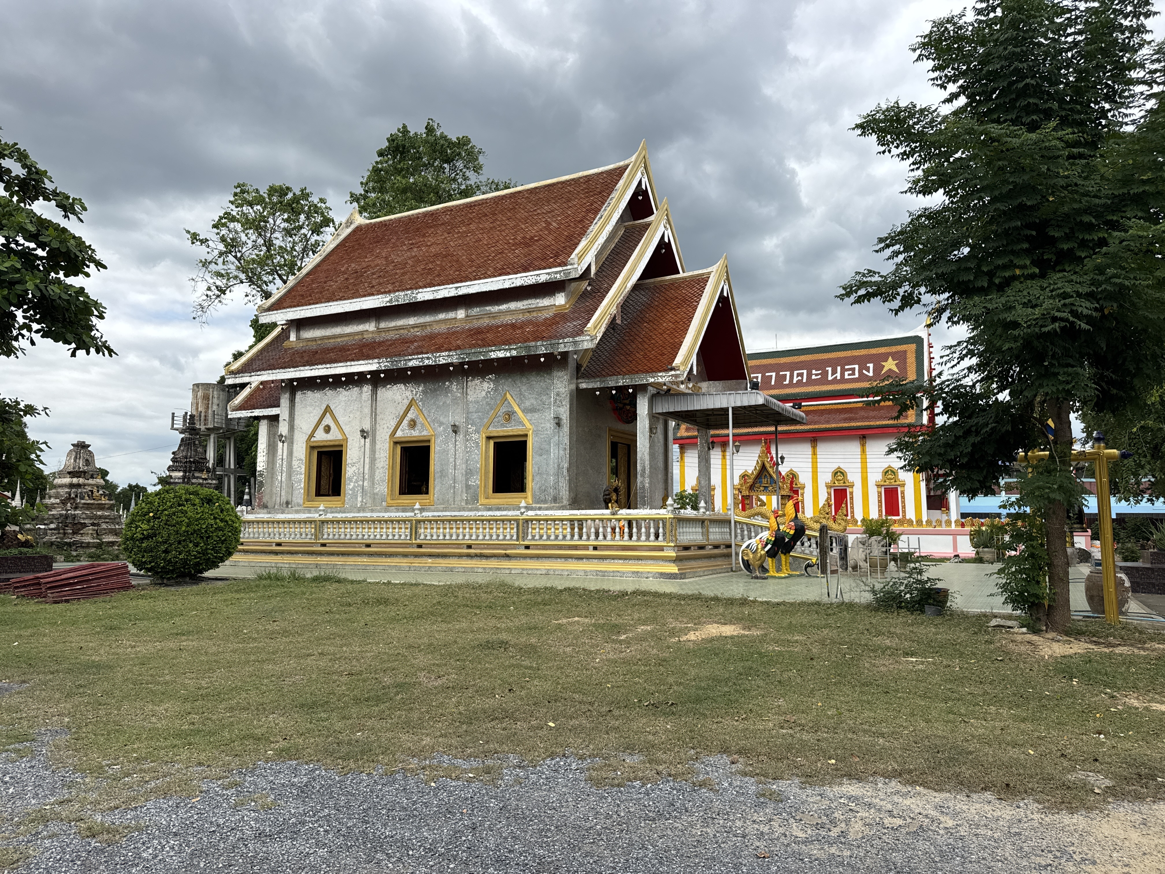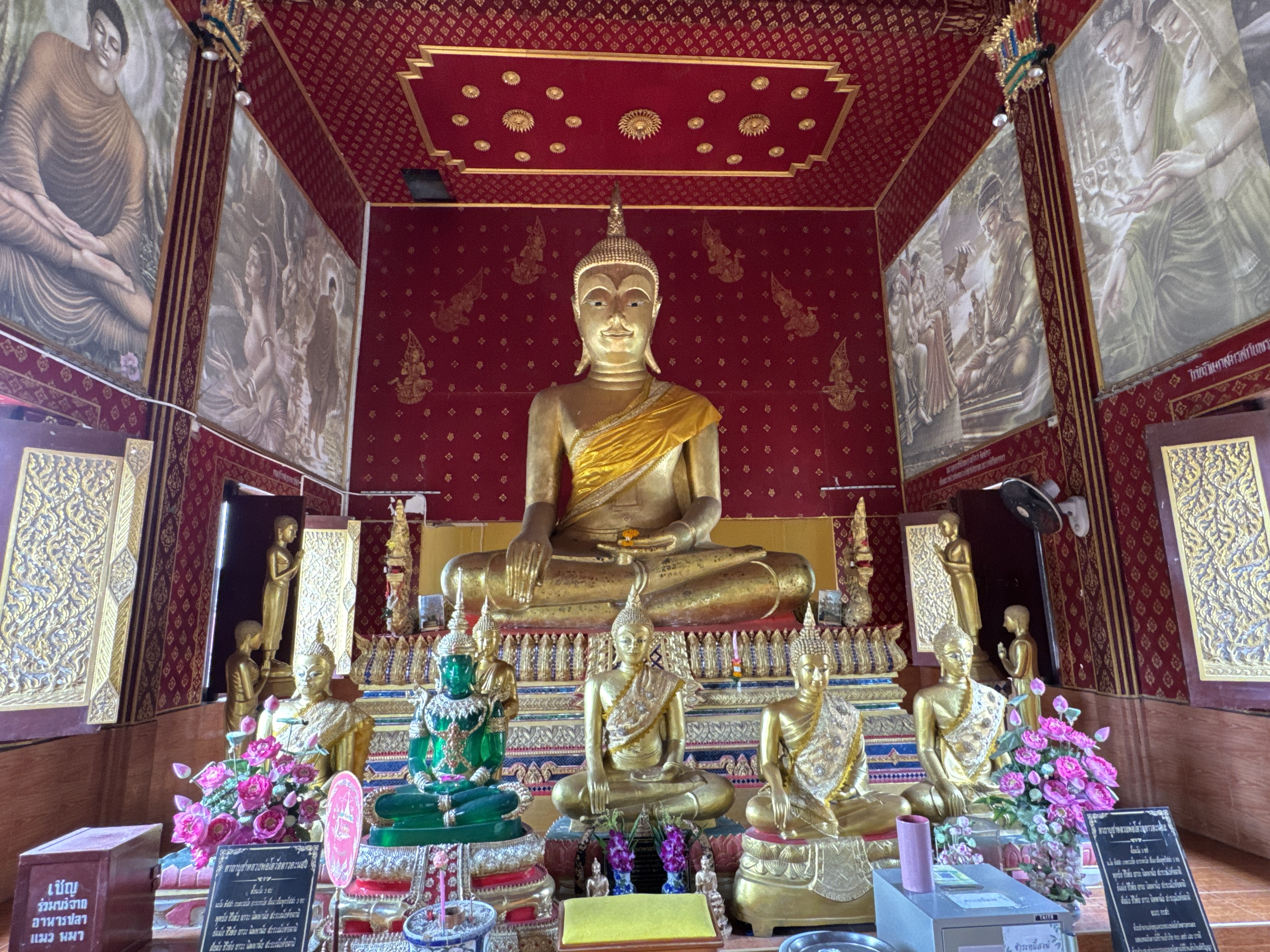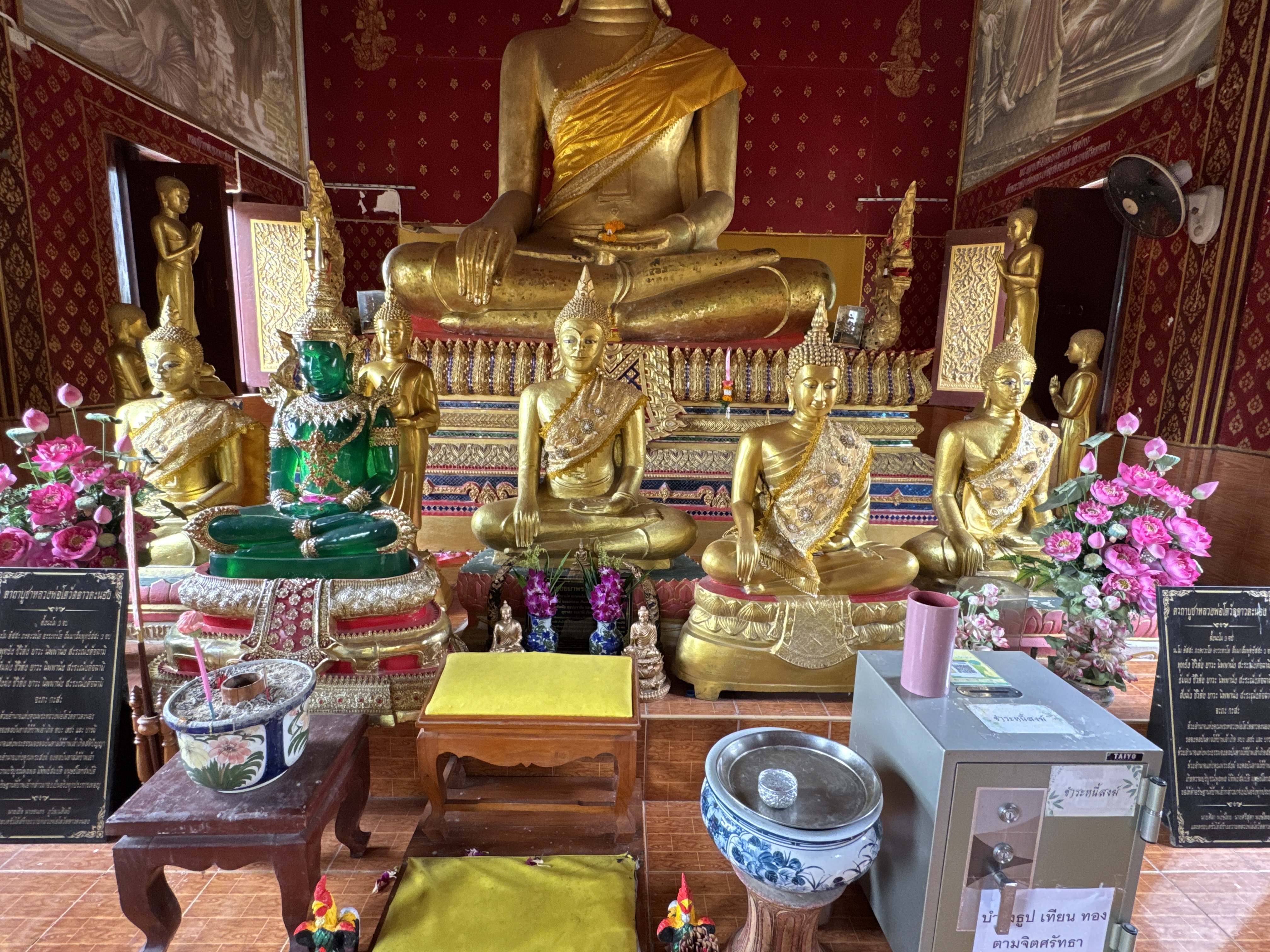 The temple’s main vihara (assembly hall) enshrines the principal Buddha image, known as Luang Pho Tho Wat Pak Khlong, a large seated figure measuring 4 meters across the lap in the “Conquest of Mara” (Maravijaya) posture, symbolizing the Buddha’s triumph over temptation.