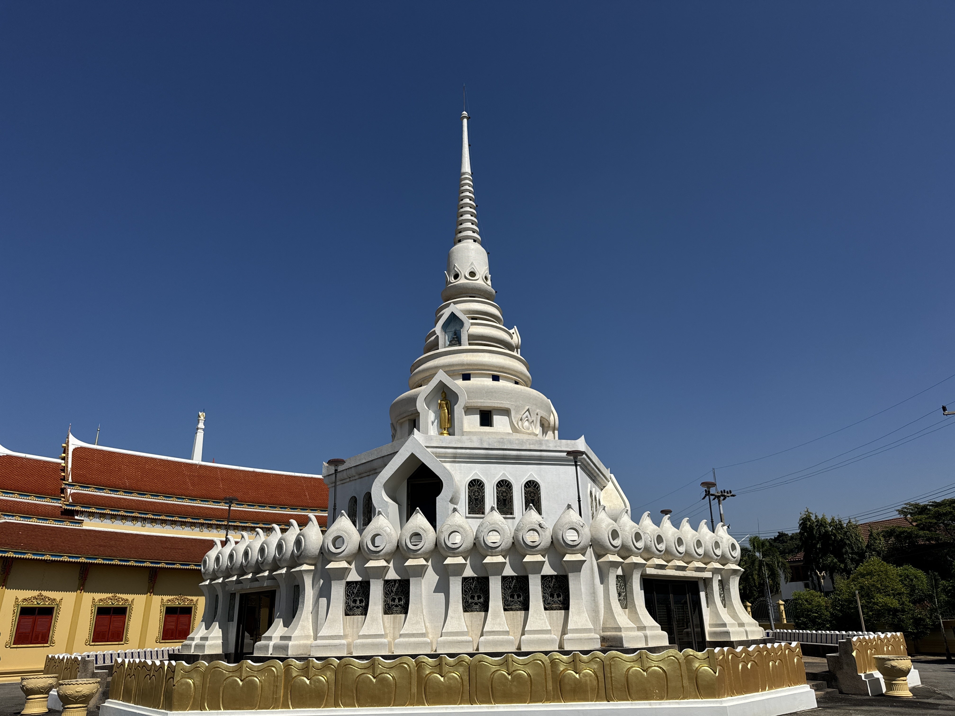 Wat Klang Khlong Watthanaram is a relatively old rural temple with roots dating back to 1885 (พ.ศ. 2428). It was originally established by a local monk named Luang Pho Chai, who led villagers in building the temple on low-lying land surrounded by canals. At that time, it was called Wat Bo Hak (วัดบ่อหัก). The name was later changed to Wat Klang Khlong Watthanaram (meaning “Temple in the Middle of the Canal of Prosperity”), though locals often shorten it to Wat Klang Khlong.